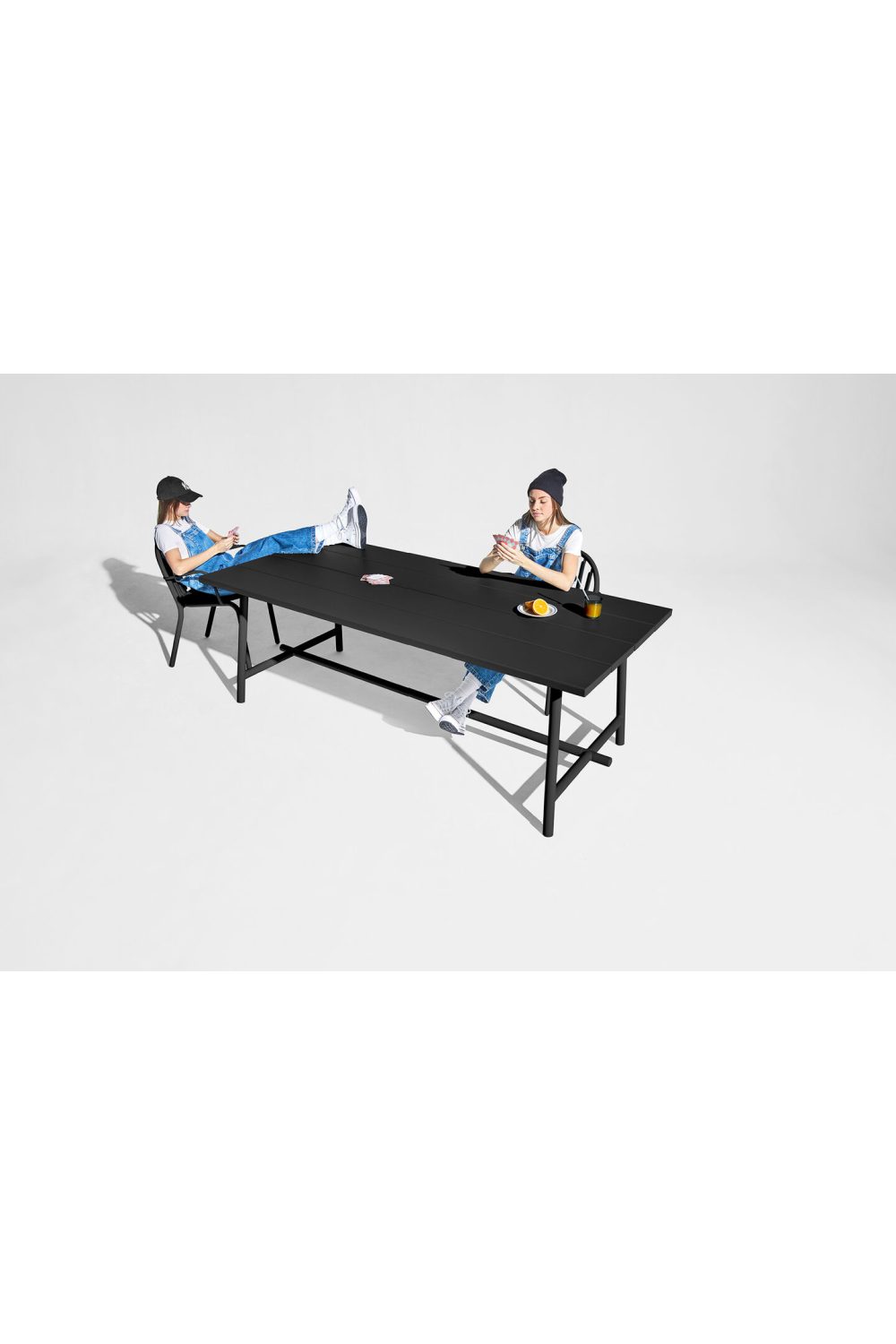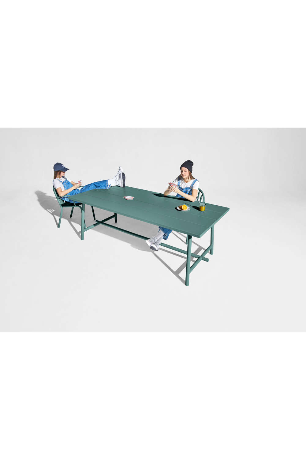 Fred's Armchair is a modern interpretation of the classic slatted chair. This bistro chair is made of weather-resistant aluminum, and its seat is curved like a cushion. That makes it, in combination with the armrests, extra comfortable. The recess in the seat in the shape of a smile ensures that rainwater runs off. Also handy: you can easily stack 6 garden chairs on top of each other. Fred's Armchair is strong, elegant and made for years of sitting pleasure. Cheerful, strong, and handy: that's Fred's Armchair.