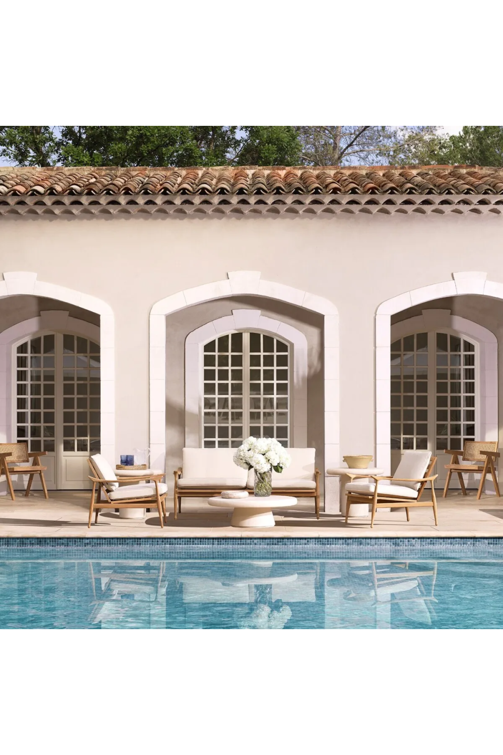 Create the perfect outdoor sanctuary with the Manzo sofa by Eichholtz. Made with natural teak and removable off-white cushions, this outdoor seating is timelessly modern. Make you patio, porch or garden a place where you can completely relax and bask in the beauty of nature.