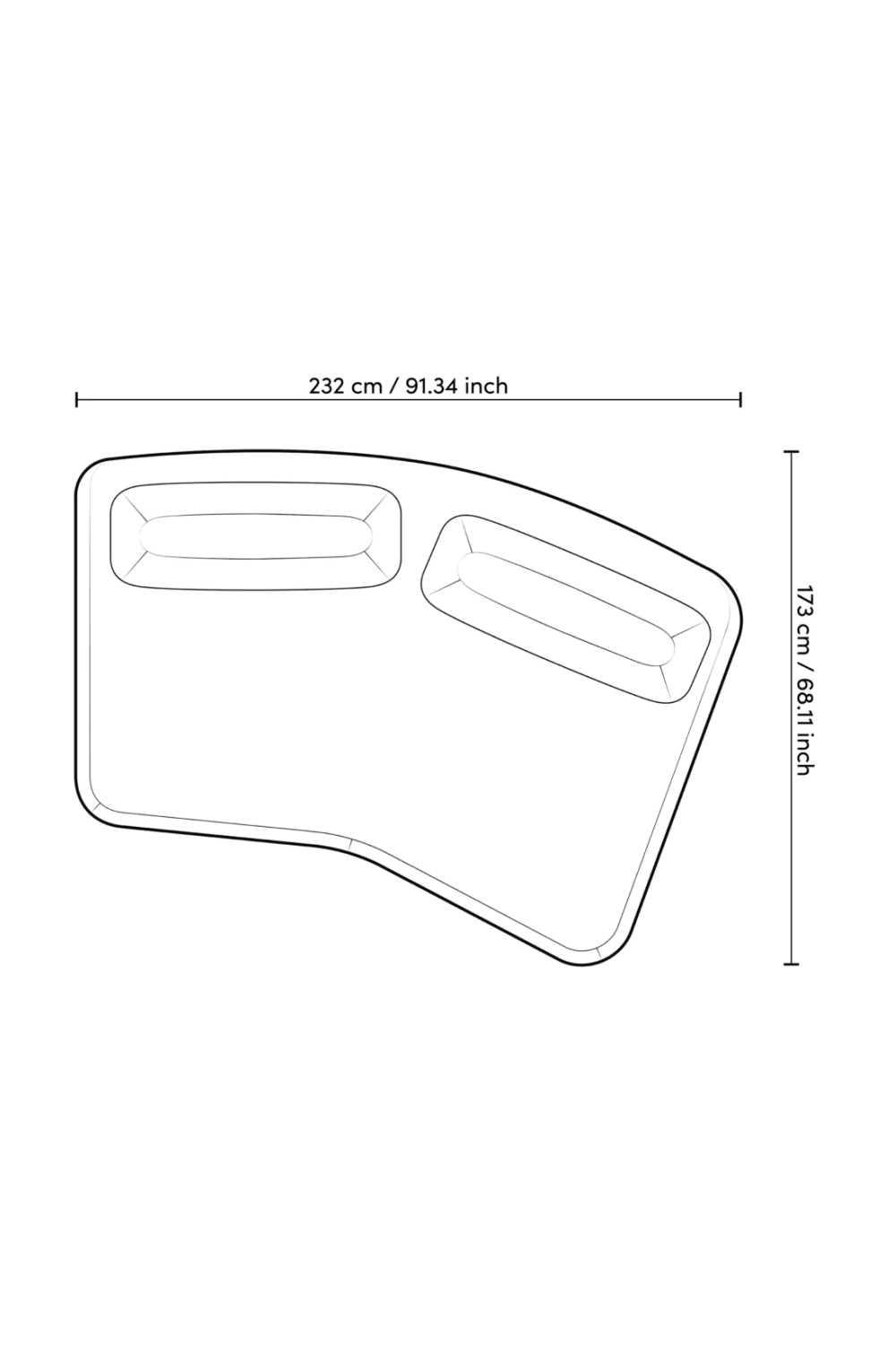 • W232-172  x D185-173 x H78 cm