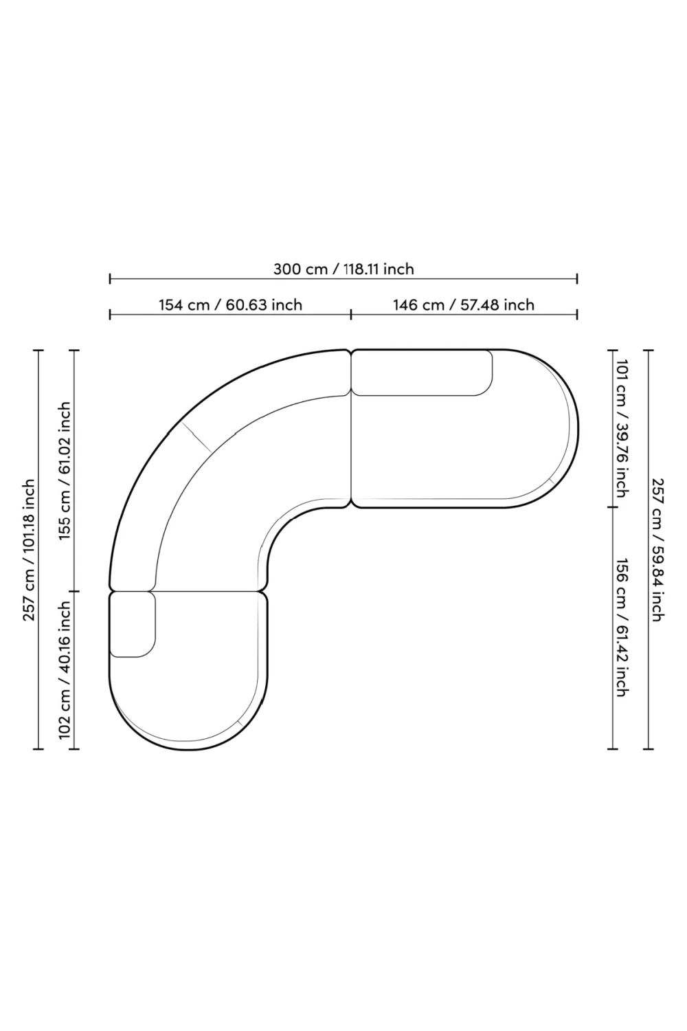 W118 x D101 x H28 in