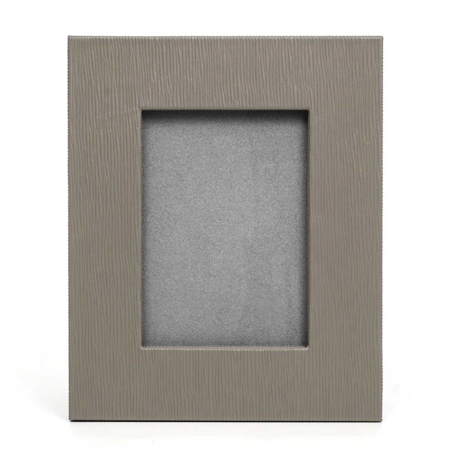 Celebrate your most cherished moments with this exquisite set of four photo frames, elegantly finished in soft calf leather. Each frame features a magnetic closure backed by luxurious gray leather, combining refined craftsmanship with timeless style. Perfect for showcasing treasured memories on a statement sideboard or adding a touch of sophistication to your bedside. Customize your display with a variety of leather options and colors contact us to explore the possibilities.