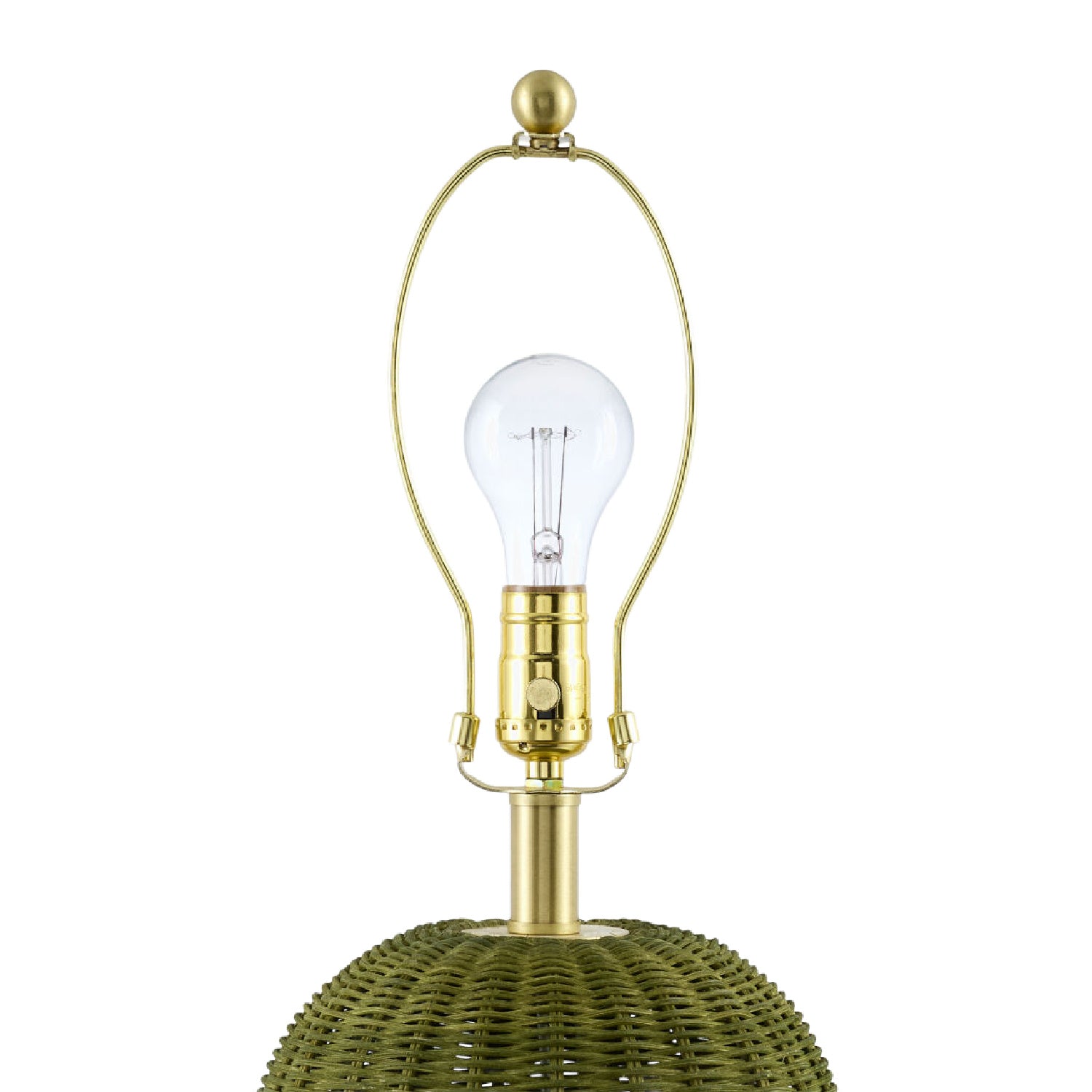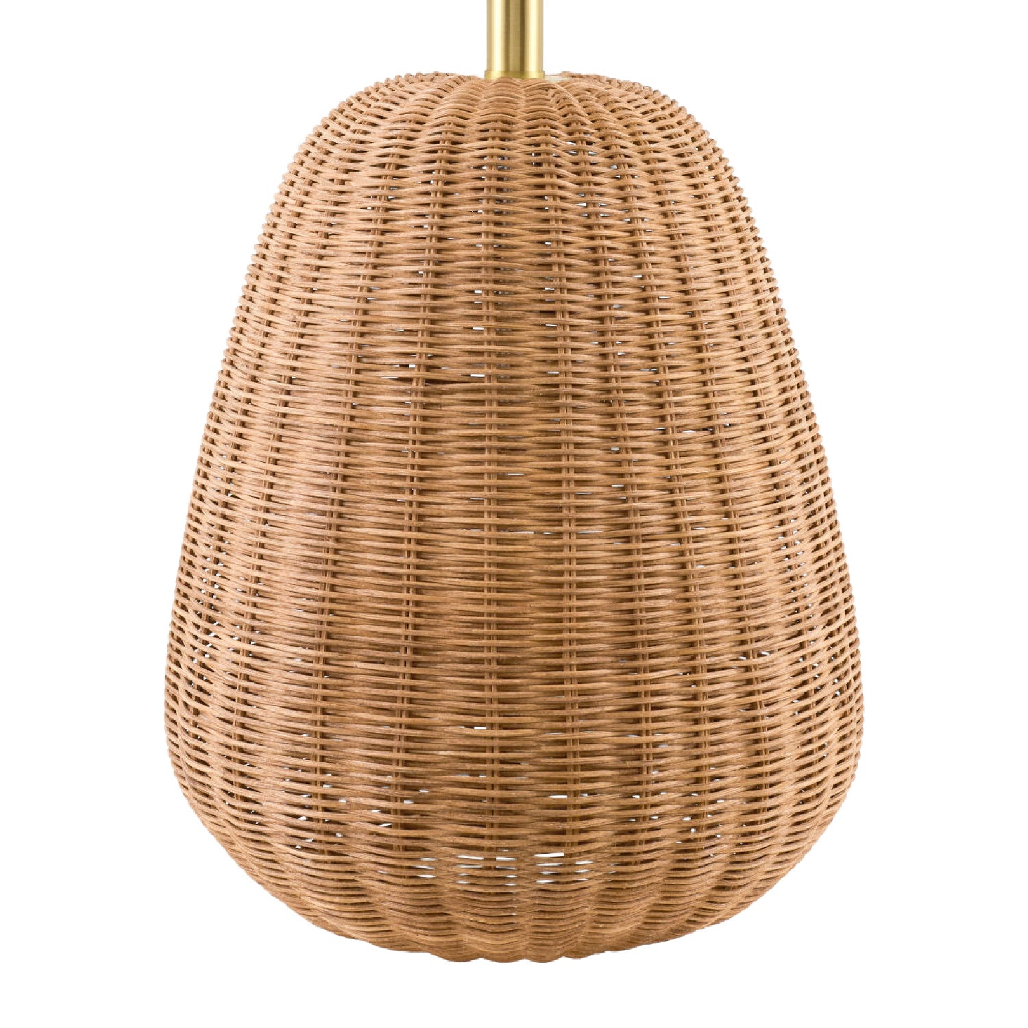 Hand-painted Rattan Linen Table Lamp | Kuda Home Olira - White Linen / Brown is backordered and will ship as soon as it is back in stock.