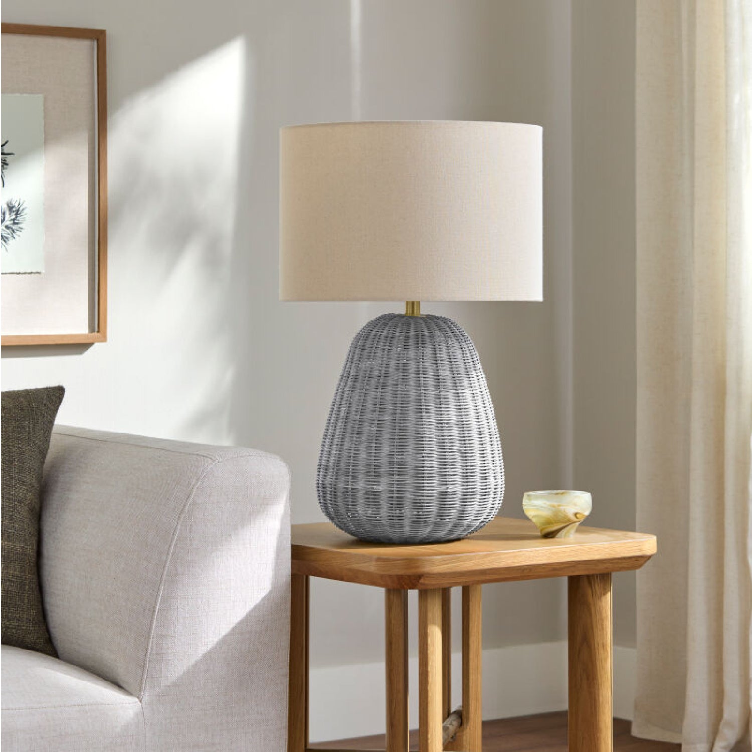 Hand-painted Rattan Linen Table Lamp | Kuda Home Olira