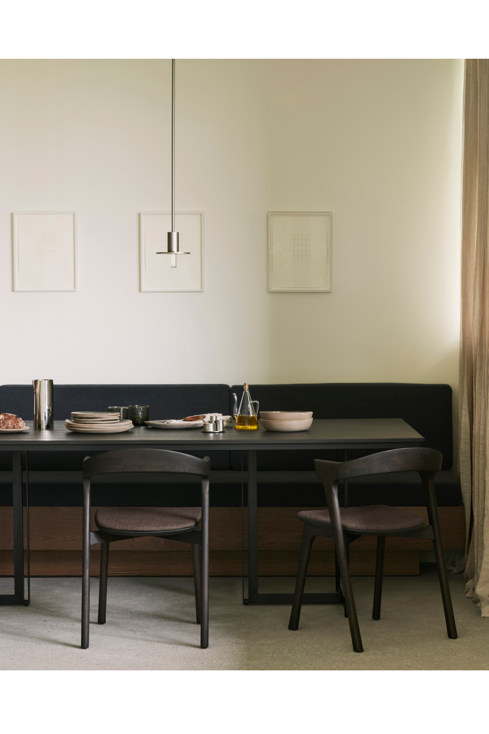 A versatile addition to any home, the Varnished Oak Classic Dining Chair by Ethnicraft infuses a space with a sense of organic charm. Celebrating the innate beauty of natural materials, this brown-tainted Bok chair has been varnished for extra sheen and protection. It combines sculptural elegance and contemporary crafting into a graceful and airy form. It is also available with brown leather upholstered seat for extra seating.
