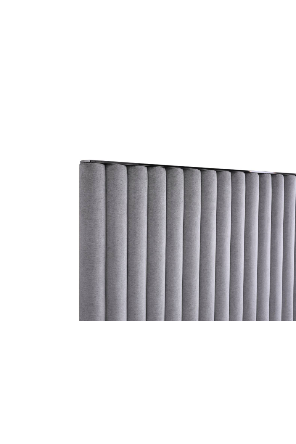 This High Headboard Gray Velvet and Silver bed has a dimensional round stripe detail and contemporary square legs. Works nicely with our Splendor casegoods.