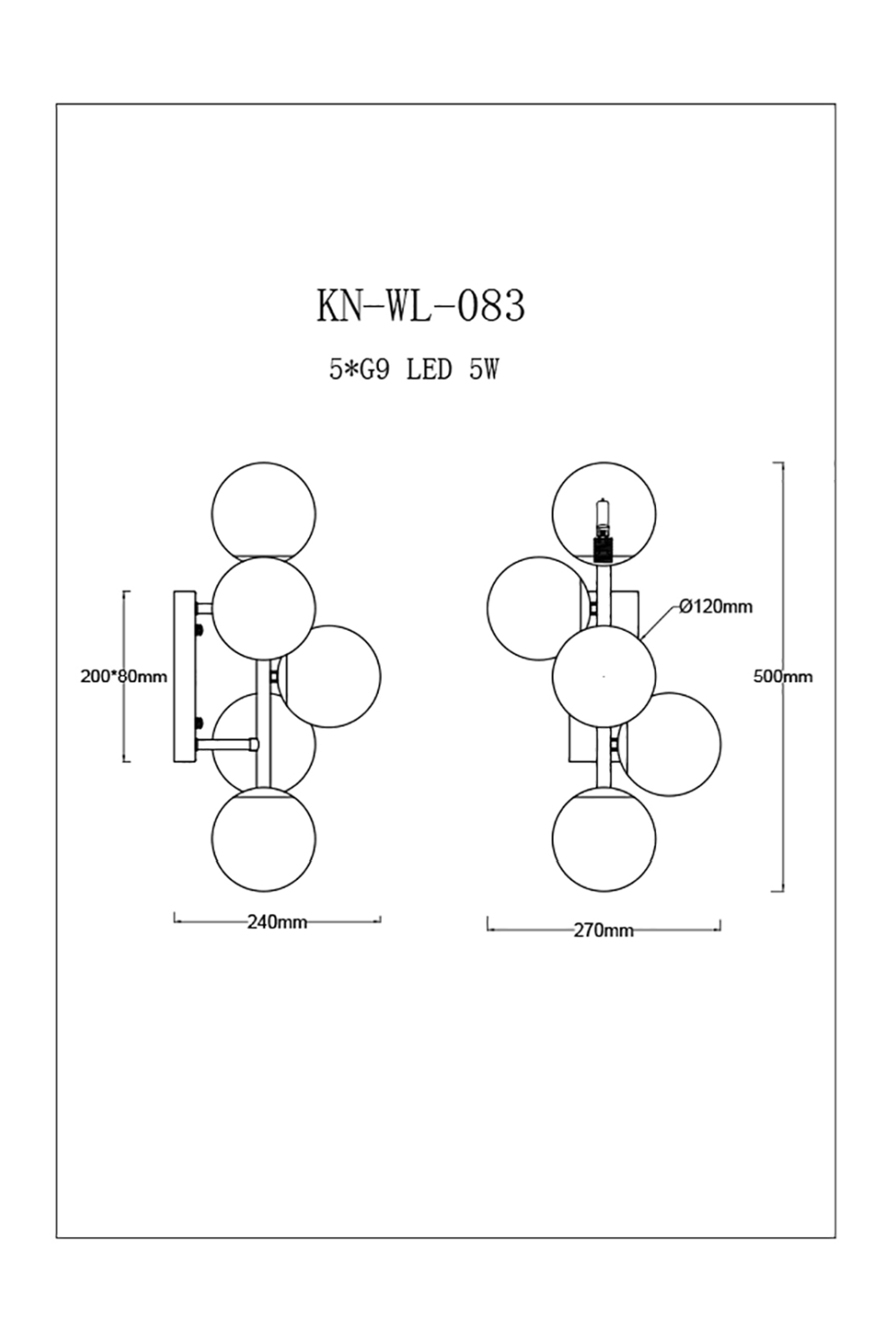 - 5 x G9 LED, 5W (Bulb is not included)