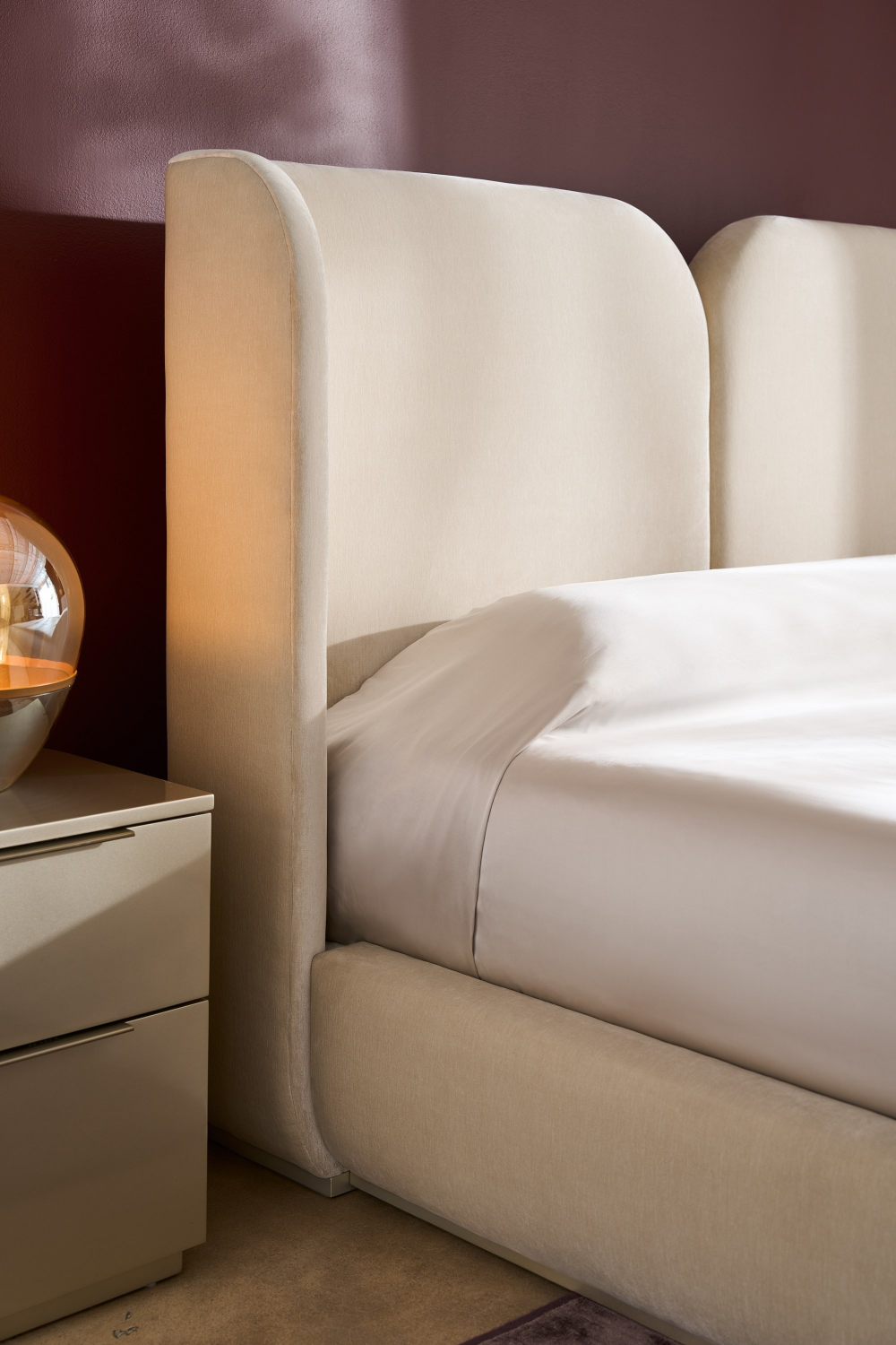 Clean and elegant, the Oblique Nightstand pairs filleted edges with a combination of rectangular fronts. Fully finished in iridescent Soft Silver Paint Gloss, this piece defies its simplicity and presents a graceful complement to any bedroom. Discrete Brushed Whisper of Gold metal pulls are stamped with the Caracole logo. It has two generous drawers with soft-close under-mount guides. The interior is painted to match the exterior.