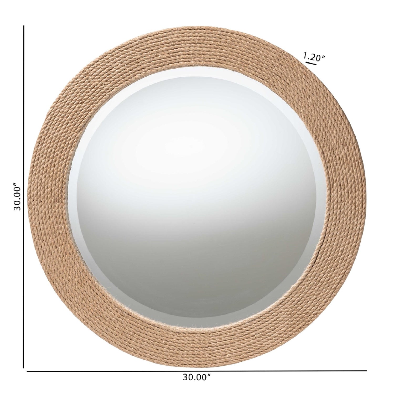 The classic allure of breezy beachside style is imbued in the lovely Nieva accent mirror. Made in Vietnam, this coastal piece consists of a wood frame embellished with woven rope. Its round silhouette features a unique texture of braided rope for a rustic display showcasing the intricate craftsmanship of the piece. The Nieva will arrive fully assembled and is wall mountable. A modest yet enchanting fixture, the Nieva accent mirror is sure to refresh any layout.