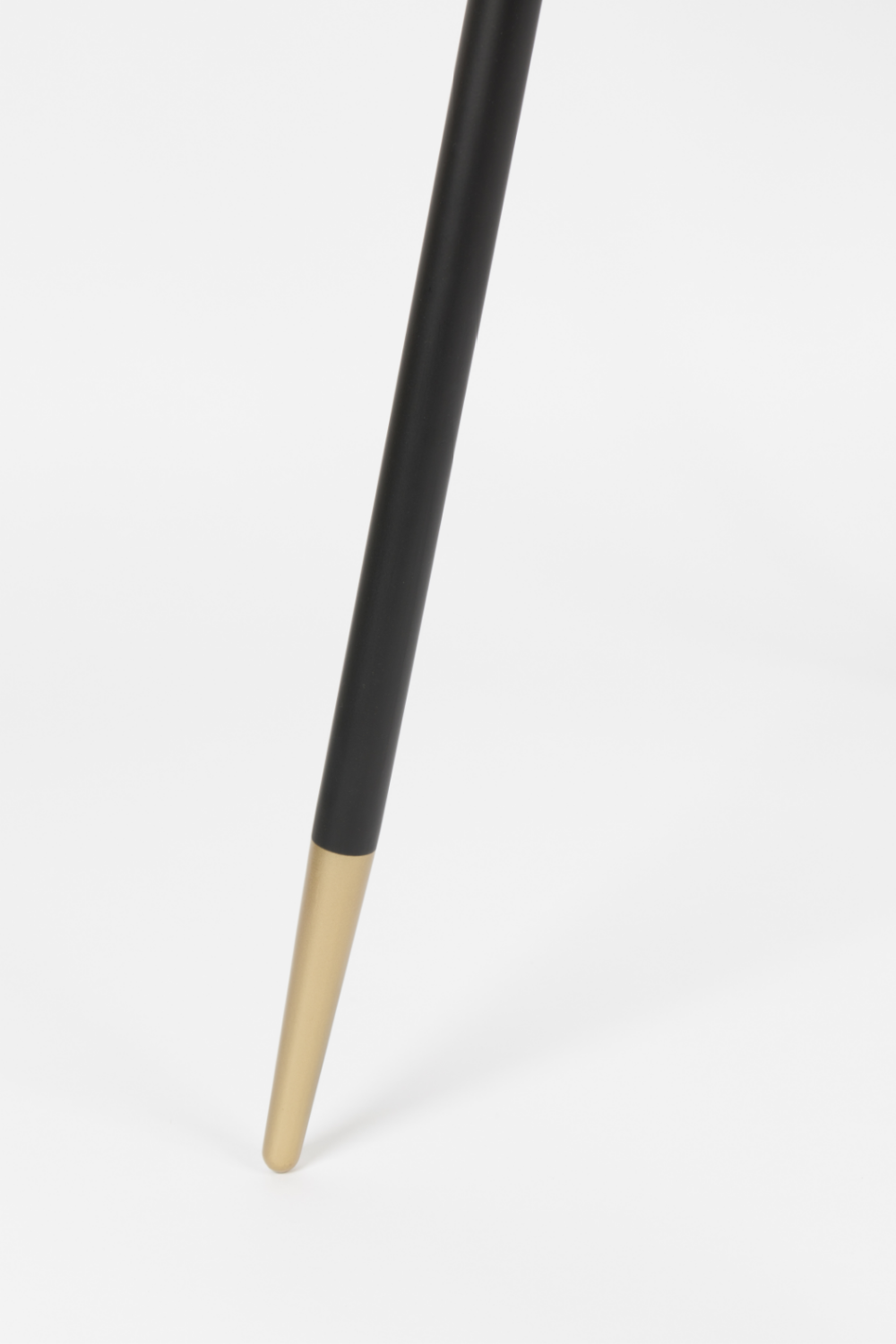 Transform your dining space with the DF Denise Dining Table, where every meal is an expression of style and subtle elegance. Its round wooden top boasts a rich walnut-colored ash wood veneer. This dining table's sophisticated appeal is enhanced by a radiant gold rim, while four sleek black slanted legs, capped with gold, provide a perfect blend of classic and contemporary design.