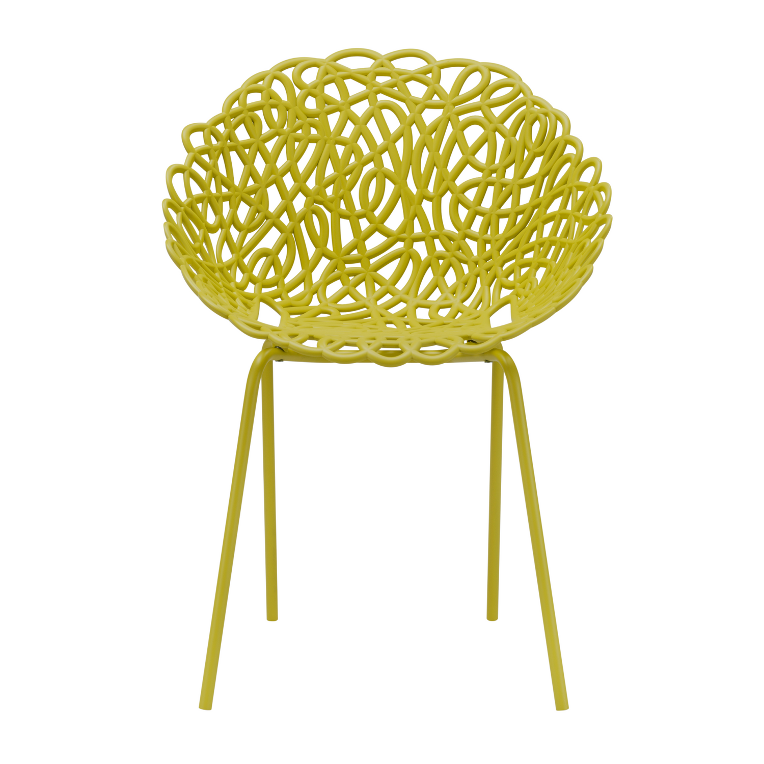 Introducing the "Bacana" chair, a collaboration between Qeeboo and Estudio Campana. Crafted with 100% recyclable polypropylene, this uniquely twisted chair symbolizes freedom and anarchy. Its minimal use of material sets a new standard for sustainable design. Available in various colors for indoor and outdoor use.