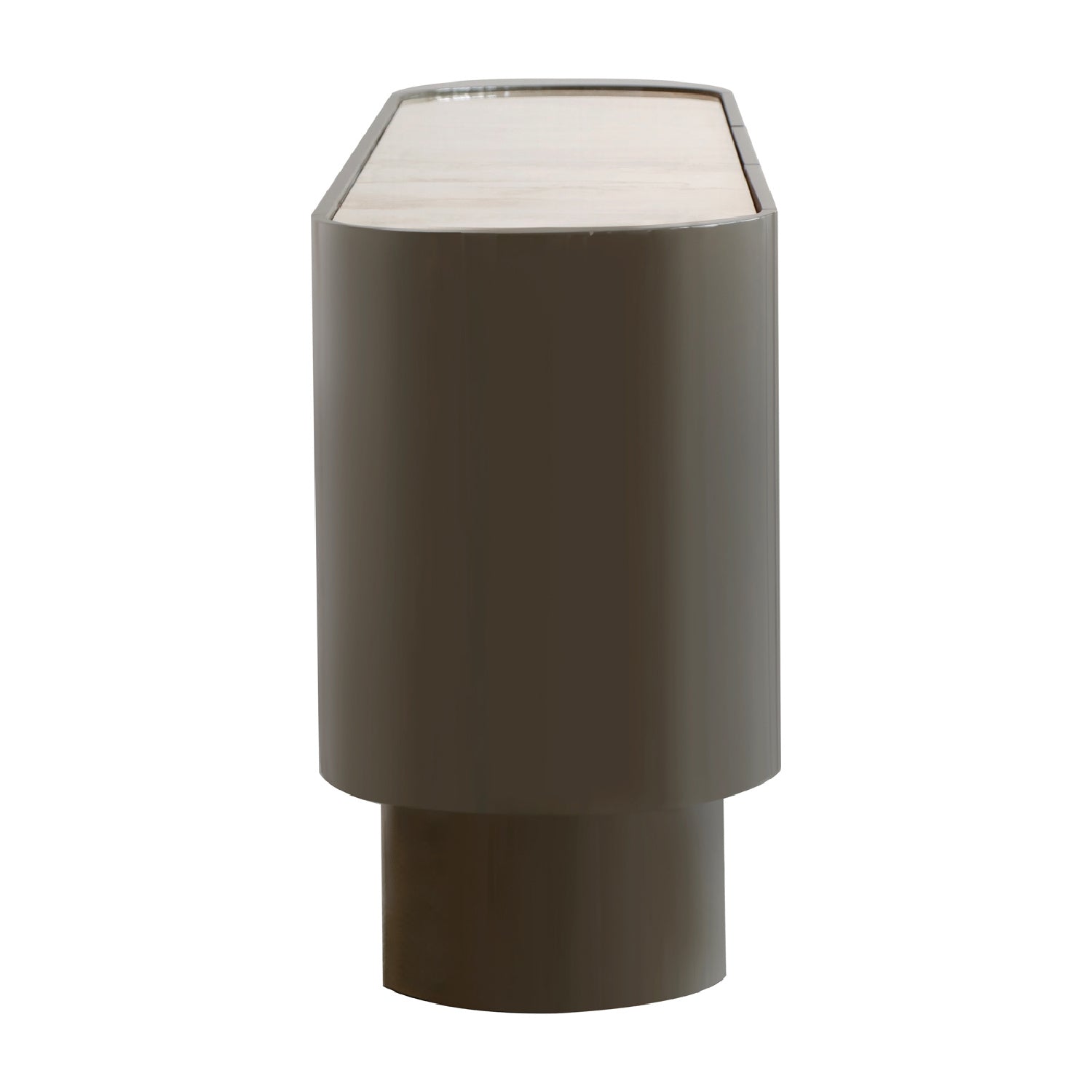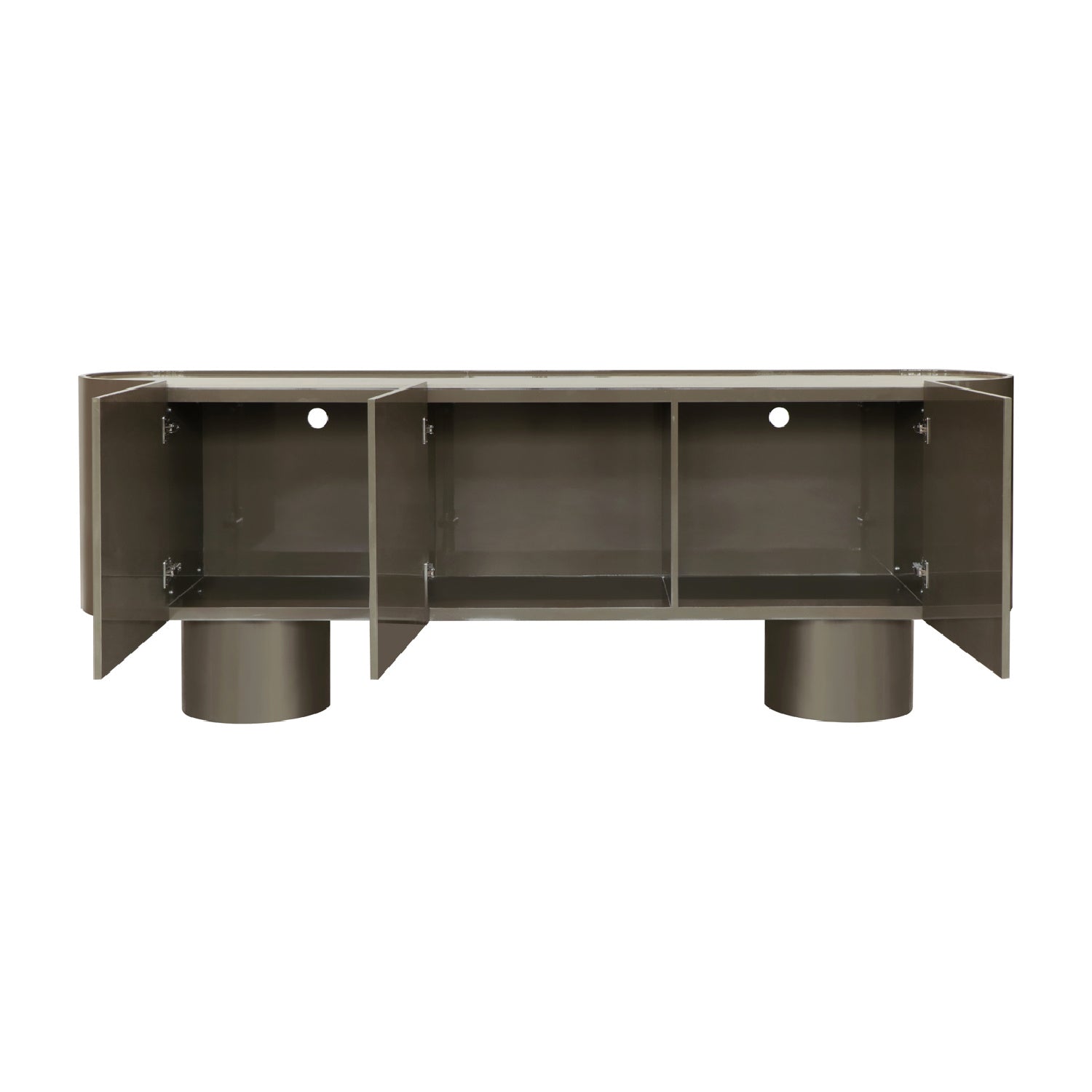 This sideboard features a wide, closed silhouette with calm horizontal lines. The color impression is deep and natural, contributing to a balanced appearance. Its clean design makes it suitable for living and dining spaces.