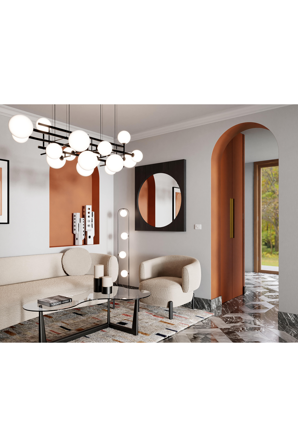 Enrich your interior with the Larson Sofa. Sensuously shaped – upholstered in Larson Sand fabric, the Sofa is also available in the tasteful tones of Boucle Whisk, bringing a textural depth to your décor. Match it with the Lapis Occasional Chair.