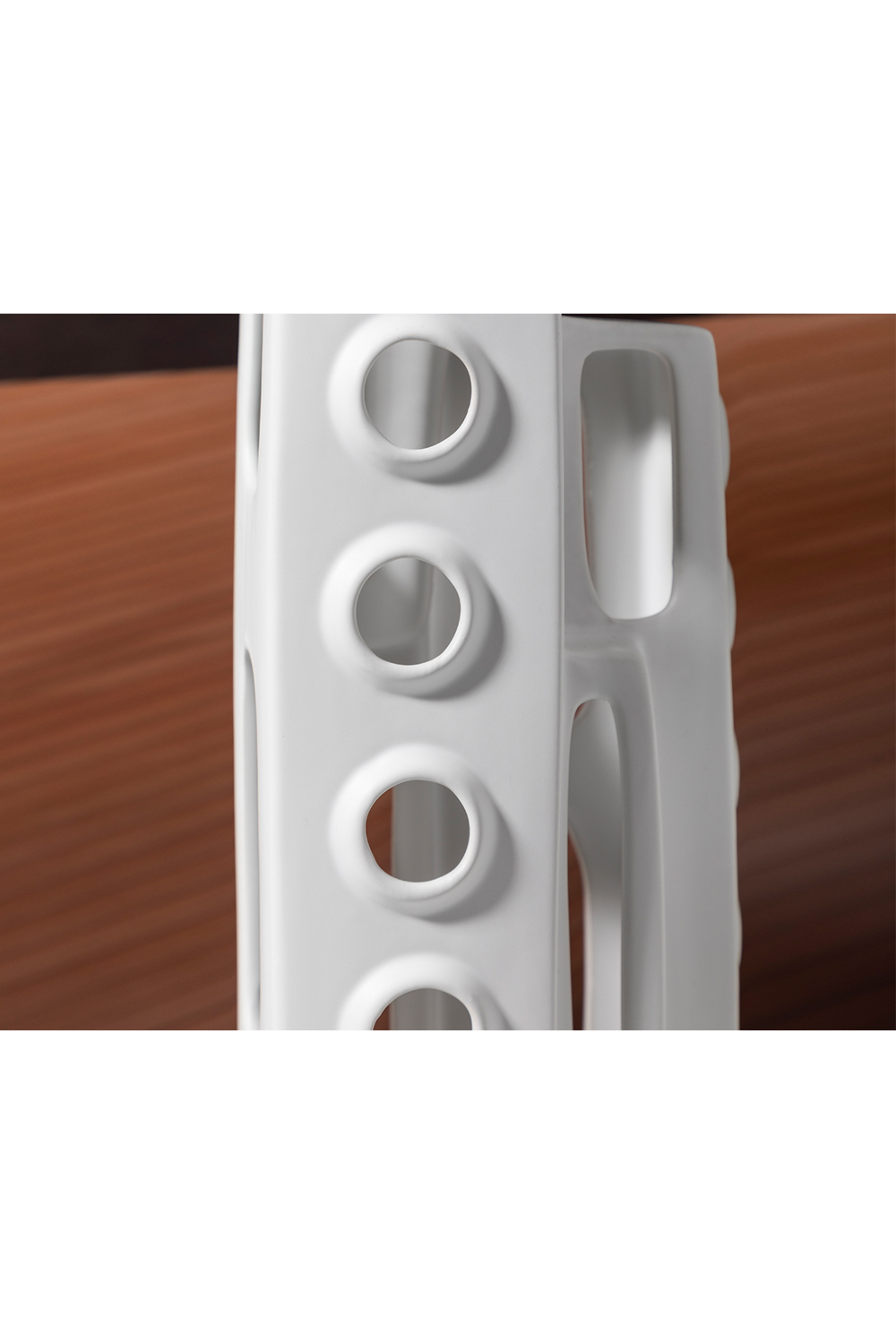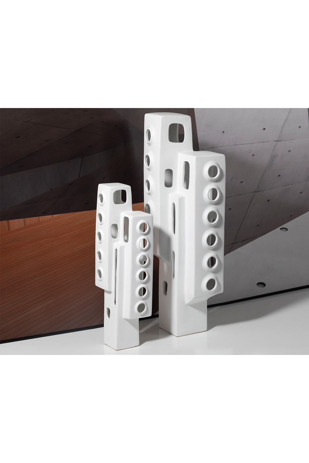 Evoking mid-century studio ceramics and adobe architectural flair, you will find an intriguing conversation piece in the Elm I sculpture. Carefully hand-crafted from ceramic, the Elm features a white glaze and flaunts tonal textures.