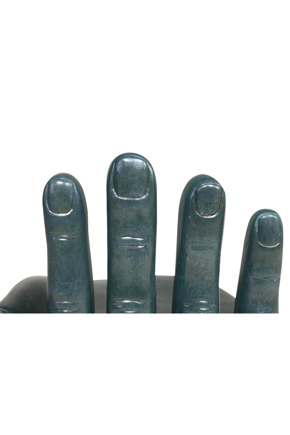 Adorn a living room or capture attention in a creative workspace with Versmissen's Hand Chair. Embodying its namesake, this chair offers a whimsical seating experience: nestled within the palm while supported by four fingers forming the backrest. Made with moss green fiberglass, its distinctive design serves as a bold statement piece, adding a playful yet sophisticated touch to any space.