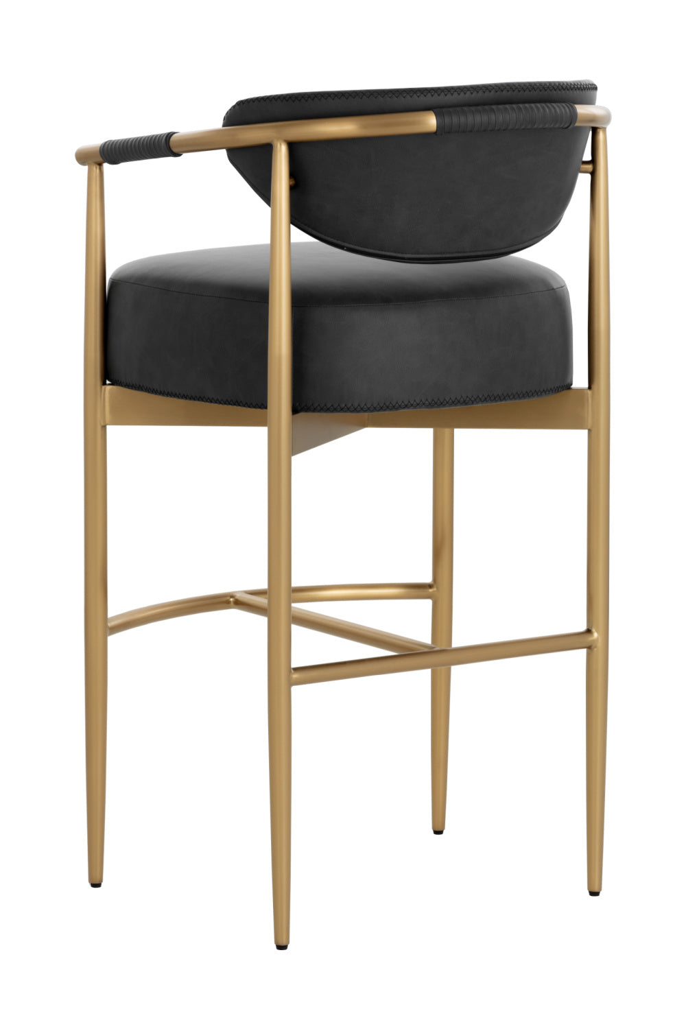 Every detail that makes up the handsome Heloise Barstool is designed with purpose. Milliken cognac faux leather upholstery and rope detailing is paired with powder-coated gold stainless steel for optimal style and comfort. Visible stitching on the seat and backrest accentuates the chair's smooth contours. This elegant barstool will perfectly complement any dining space.
