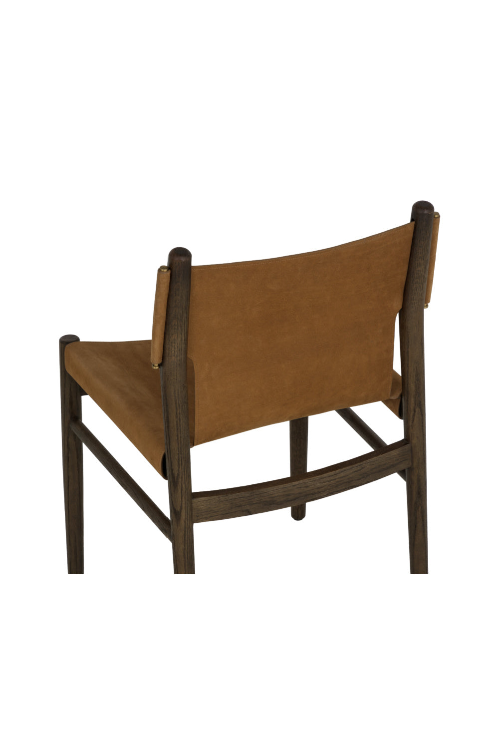 Crafted from a single piece of supple nubuck leather, the seat and back of the Argus Dining Chair are elegantly suspended within a solid oak frame. Inspired by the relaxed form of a director's chair, it features stitched leather side panels highlighting its artisanal finish. With its clean profile and sling-style silhouette, it channels a refined mid-century modern aesthetic.