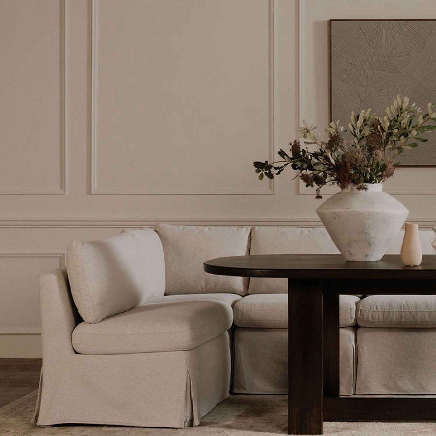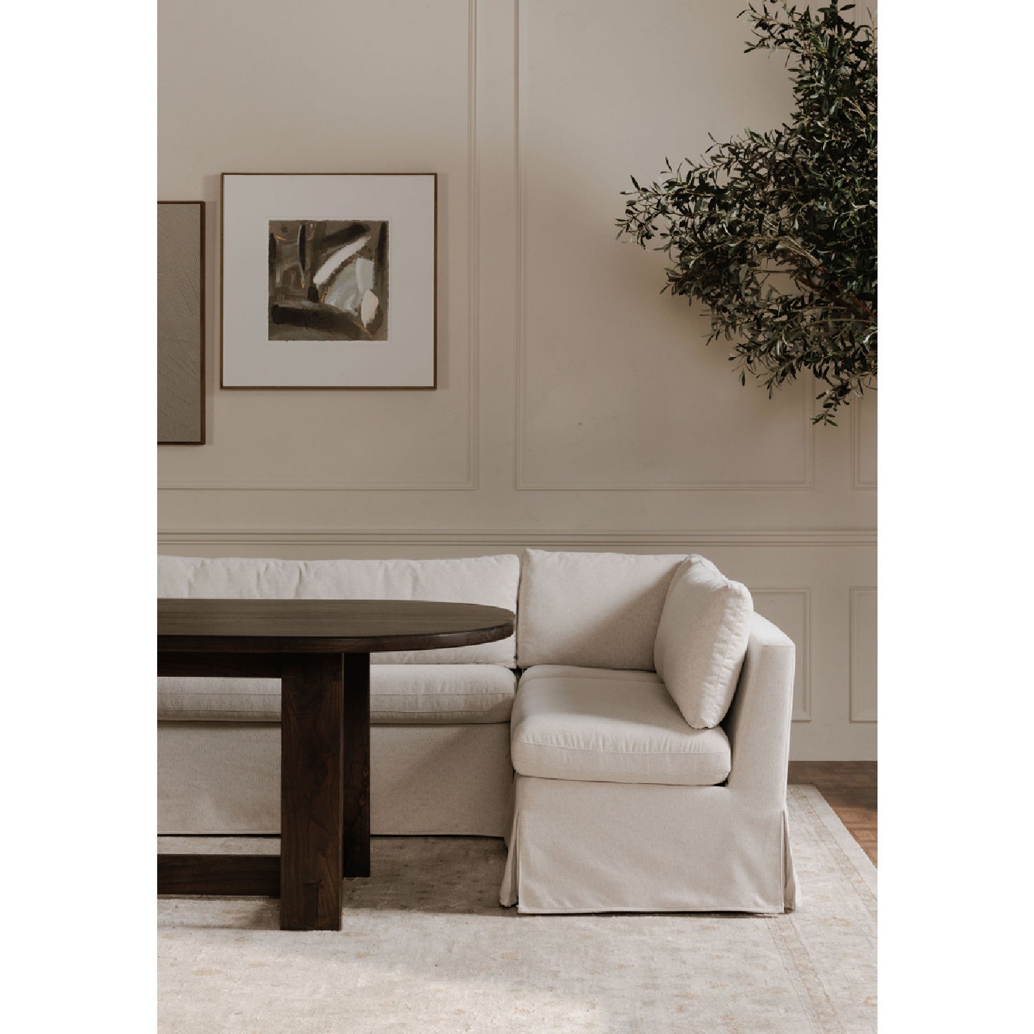 Beige L-Shaped Dining Banquette Slipcover XS | Novi Living Fable is backordered and will ship as soon as it is back in stock.