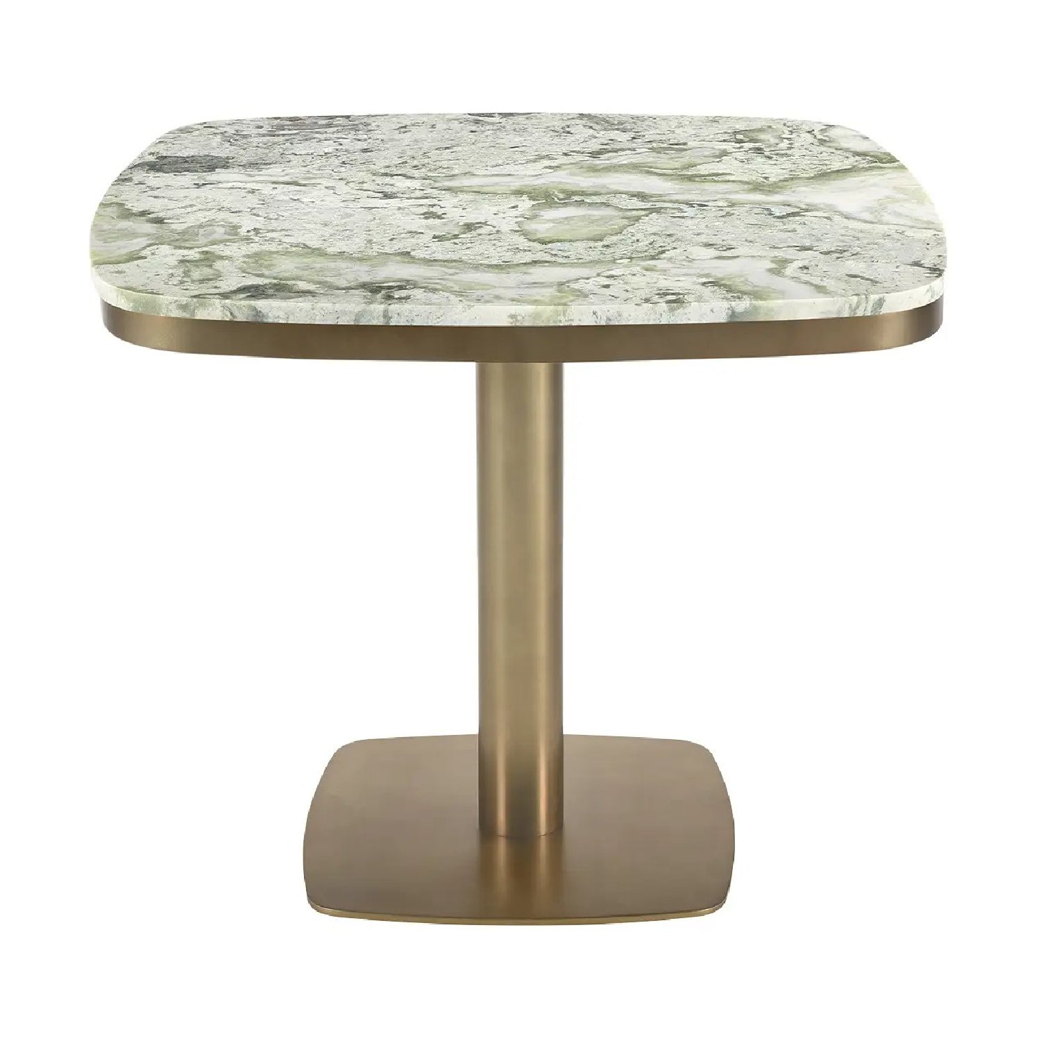 The Celeste cafe table is a beautiful blend of modern design and enduring elegance. Featuring a green onyx marble top and antiqued-brass iron base, this table is designed to stand the test of time and develop a lovely patina. Its unique combination of natural stone and brass tones is both playfully inviting and sophisticatedly chic.