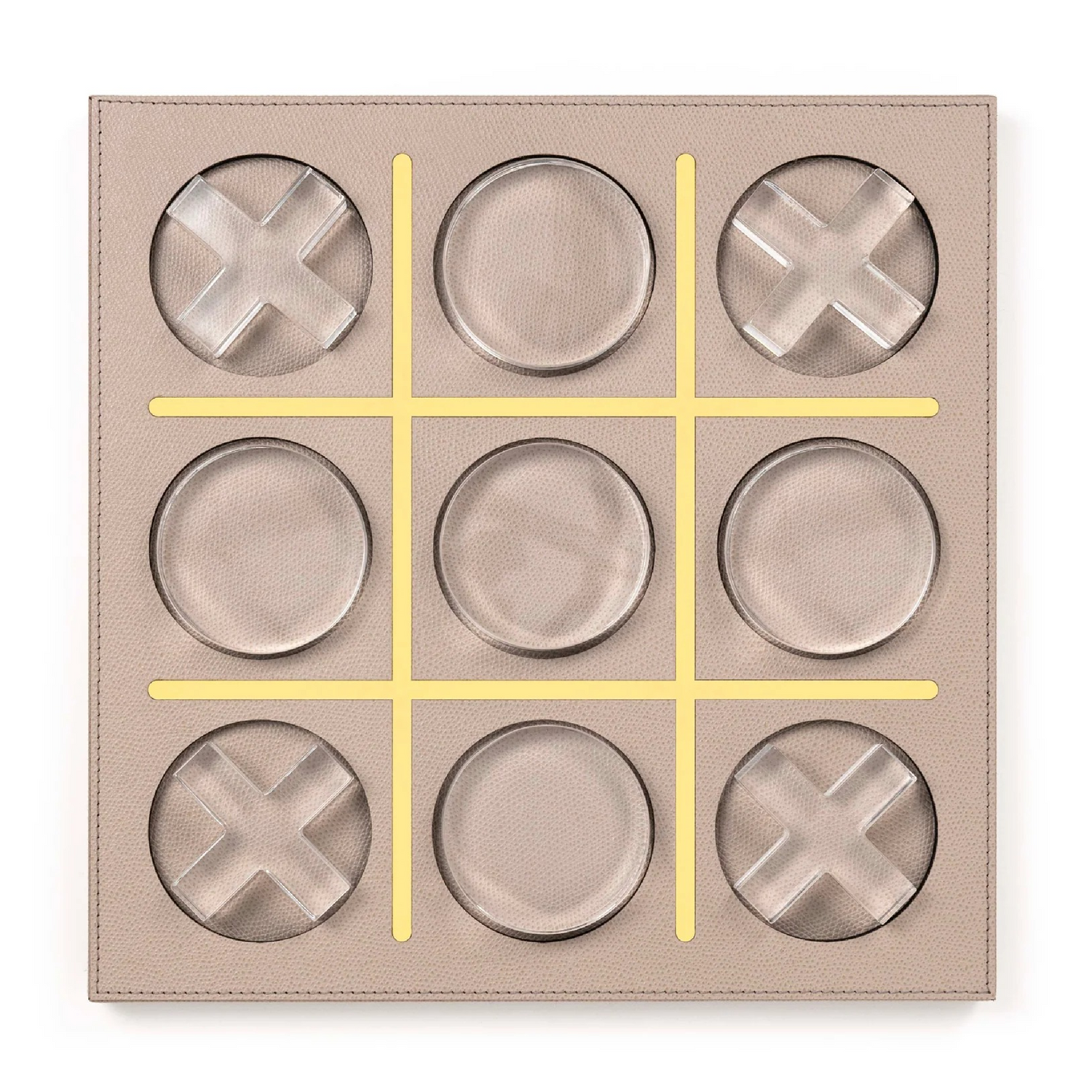 Elevate your game nights with the Pinetti Boston Tris, a sophisticated tic tac toe set crafted from premium Italian calfskin leather. Its sleek design and plexiglass pieces four crosses and five noughts make it a refined centerpiece for any table. This timeless board game blends elegance with playful charm, making it an ideal gift for discerning friends or loved ones.