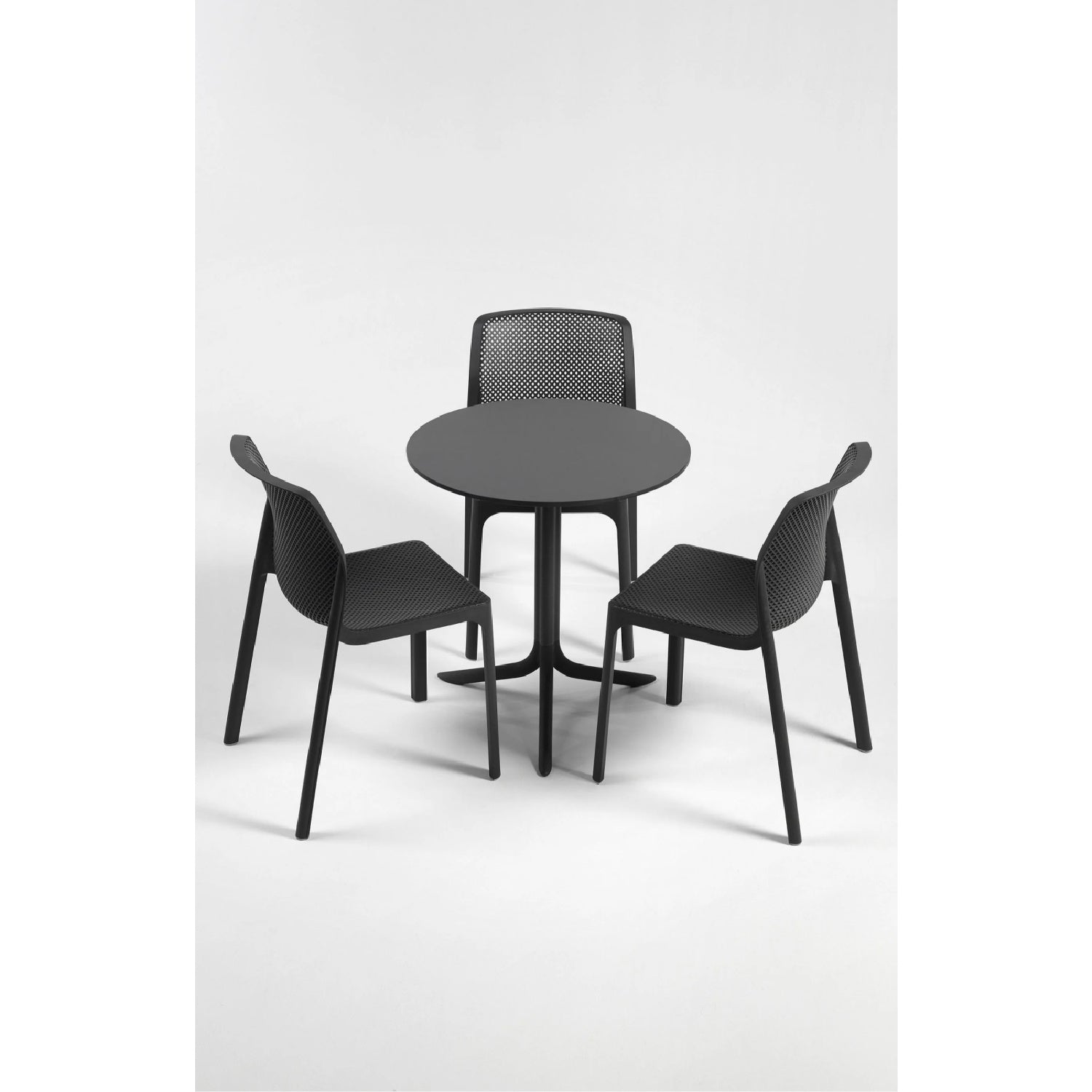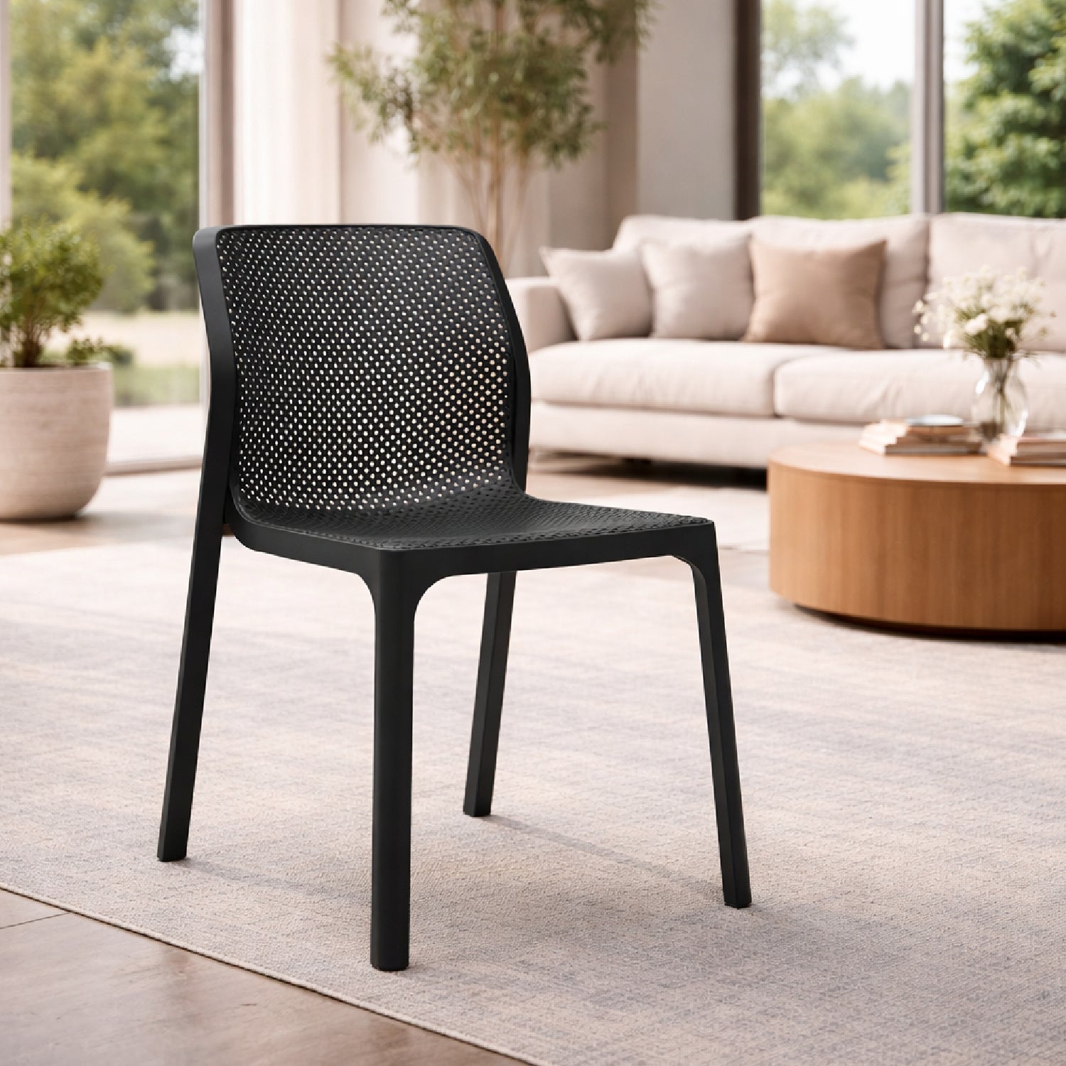Refined design and attention to detail for Bit, a chair without armrests in UV-treated, mass-colored fibreglass resin. Its design, perforation pattern and range of colors make Bit suitable for indoor and outdoor use.