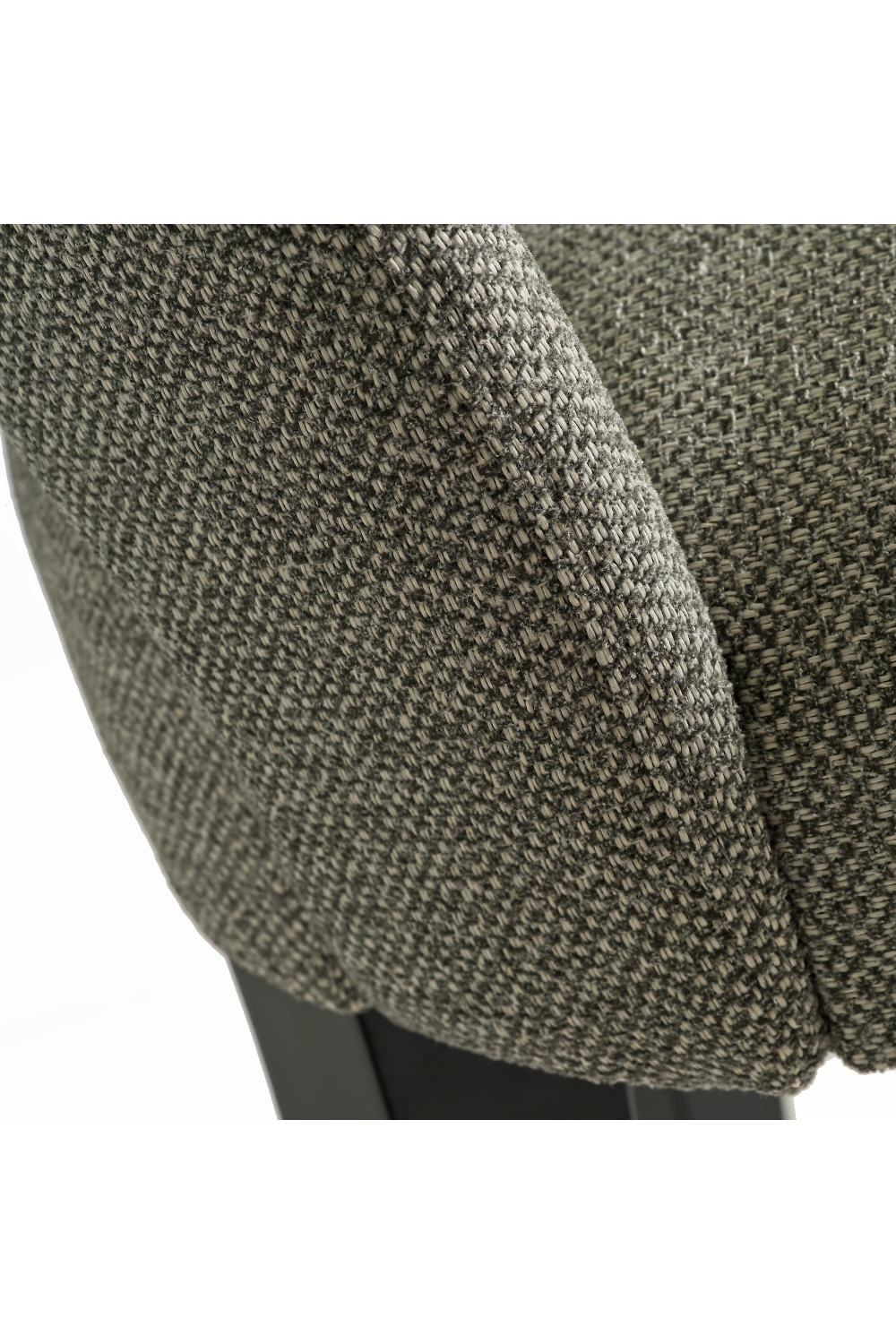 This sleek bar stool is given a modern silhouette thanks to its curved back with a semi-circular cutout. The matte black legs feature a useful metal footrest for additional comfort. The padded seat and back are upholstered in our textured fabric with a stain-resistant finish using AquaClean technology, making this an elegant and practical piece for your kitchen area.