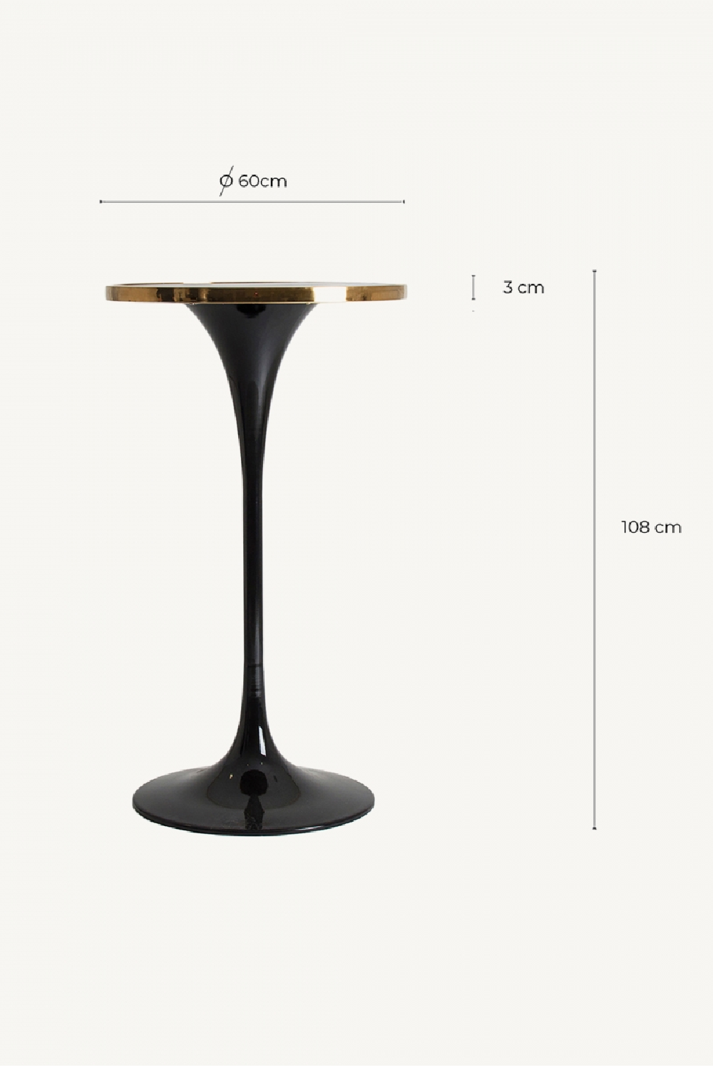 Gloss and elegance in art deco style. The Bar Than table combines black iron with glossy finish, synthetic marble in gold, and steel details. Its sleek silhouette and detachable design bring modern glamour.