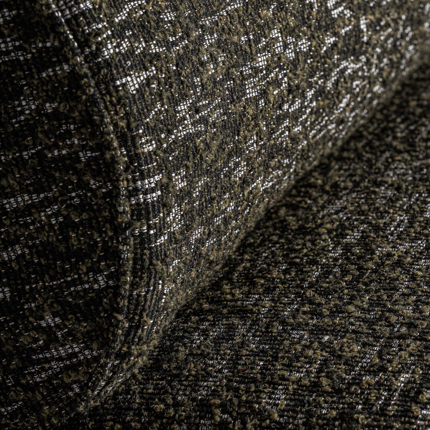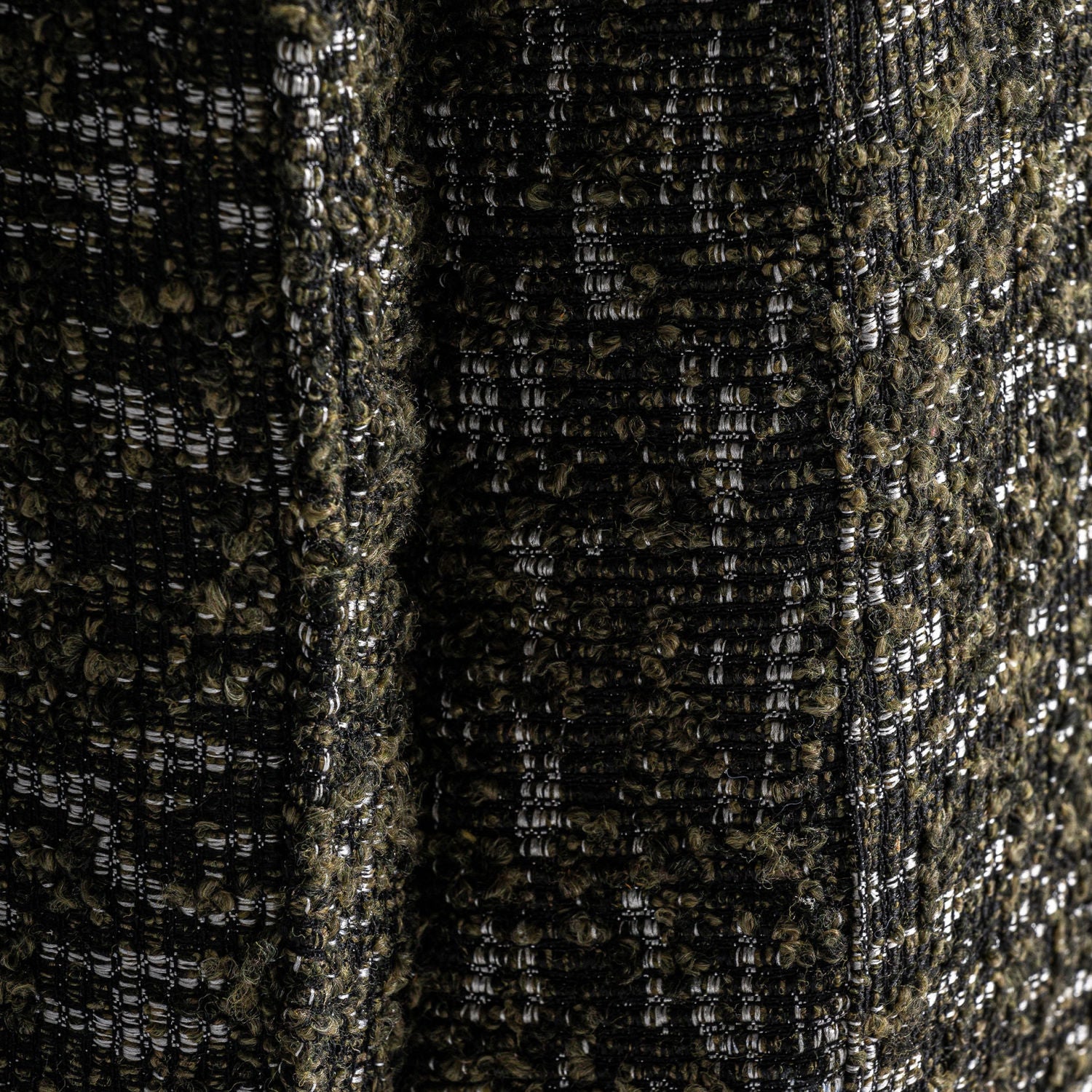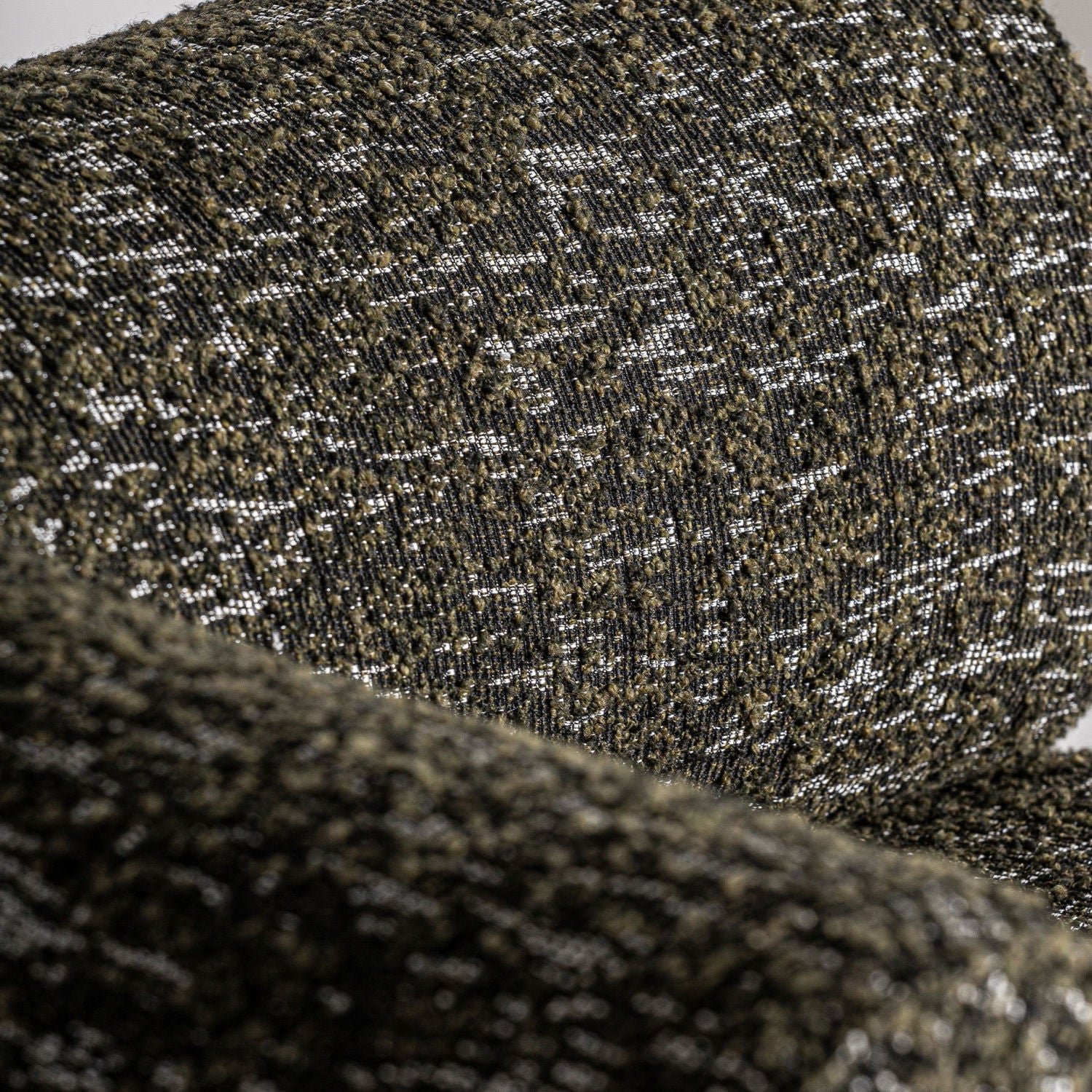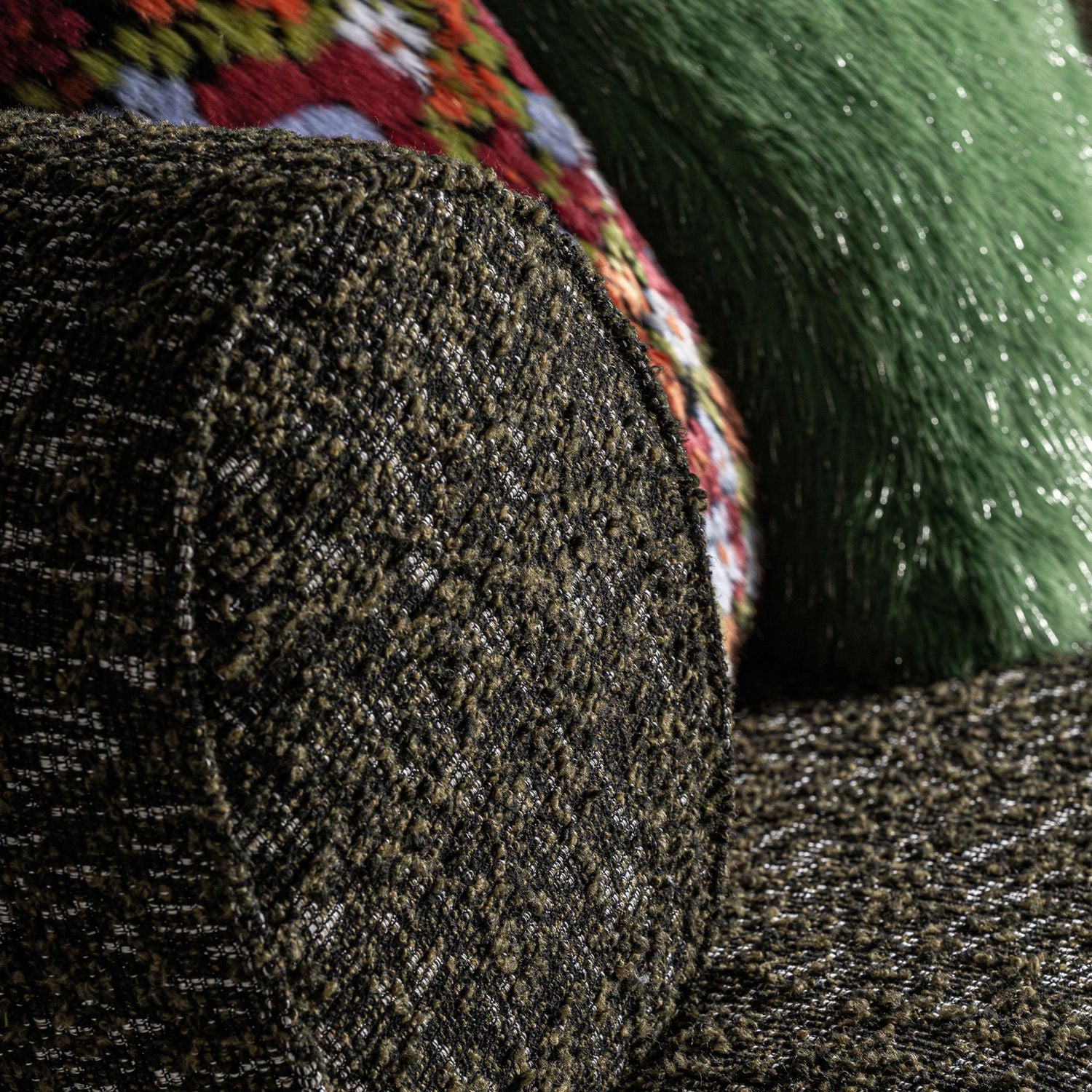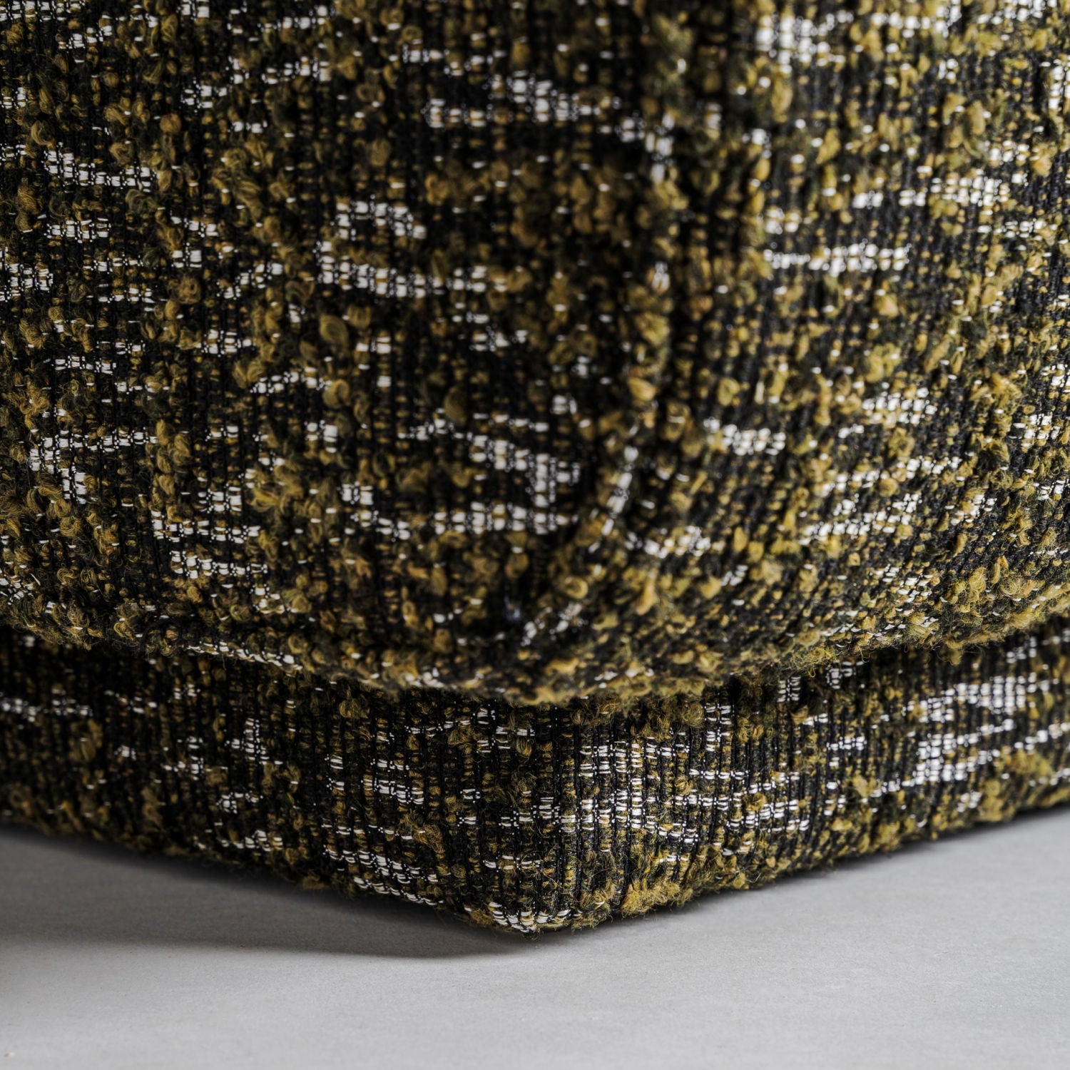 The Kozly Corner Module by Vical, in its symmetrical version, maintains the same enveloping aesthetic and mottled green upholstery. Designed to integrate seamlessly into modular compositions, it provides visual continuity and comfort.