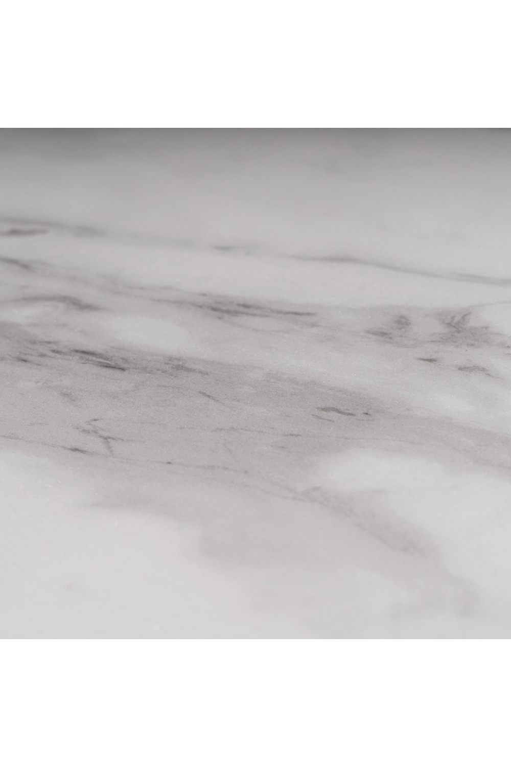 The Modrest Chelton Chest is a gorgeous example of Mid-Century design. The curved walnut veneer legs extend all the way to the top of the chest. A white ceramic top with curved edges finishes the top of the piece. Three walnut veneer faced drawers have black vertical handles and can handle all your dining needs.