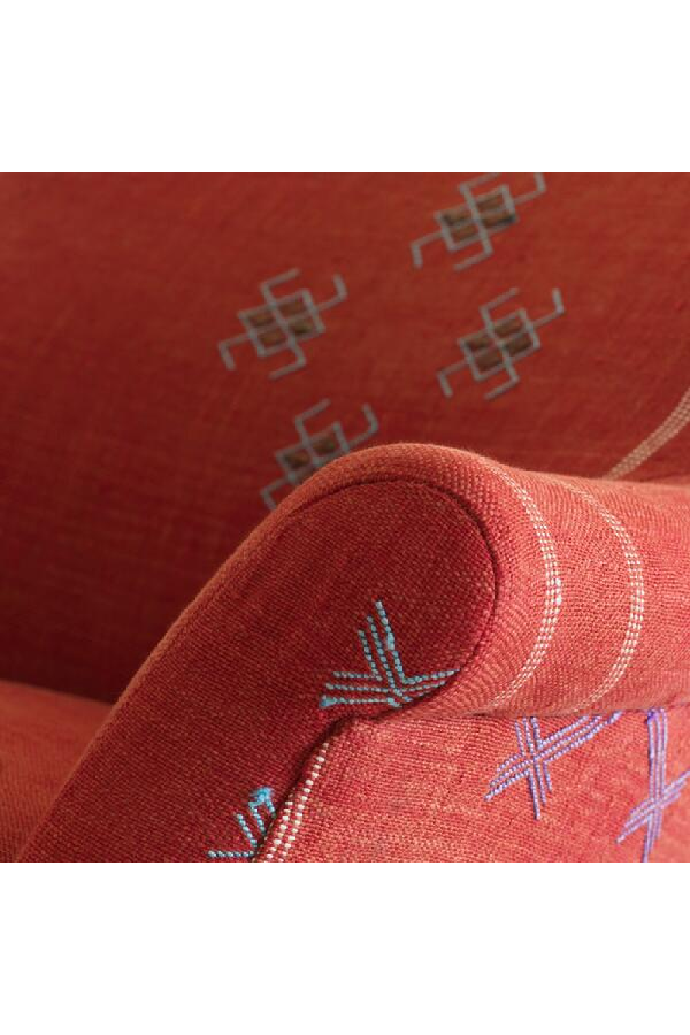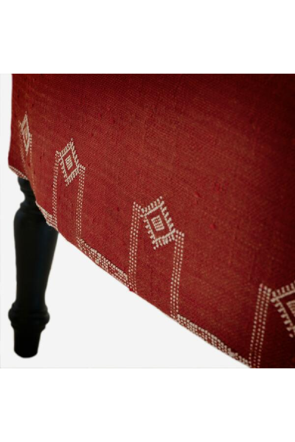 Bring the warmth and joy of the Medina into your home with the beautiful and colorful Victoria in Moroccan. Available in orange, pink, white, green, yellow, and blue, the fabric on these armchairs is handwoven by artisans in Marrakesh. Made of natural and bio cactus silk: once the fibers are collected from the aloe vera plant, they are spun and then woven to make silk thread. The thread is then dyed in different beautiful colors, and then hand-loomed to make each piece wholly unique.