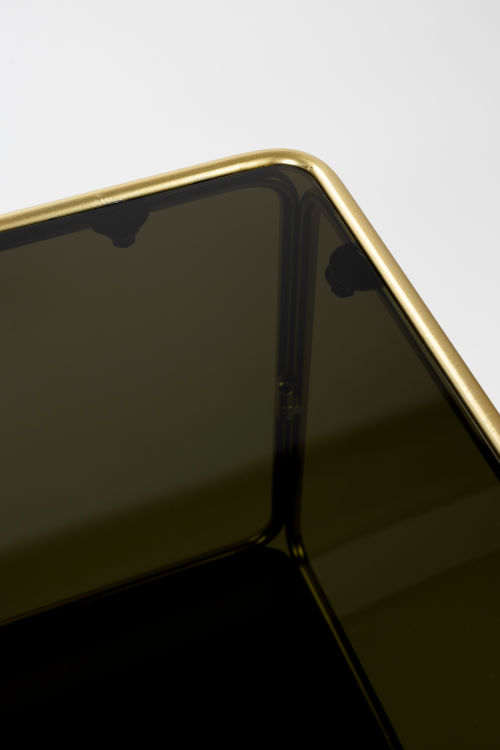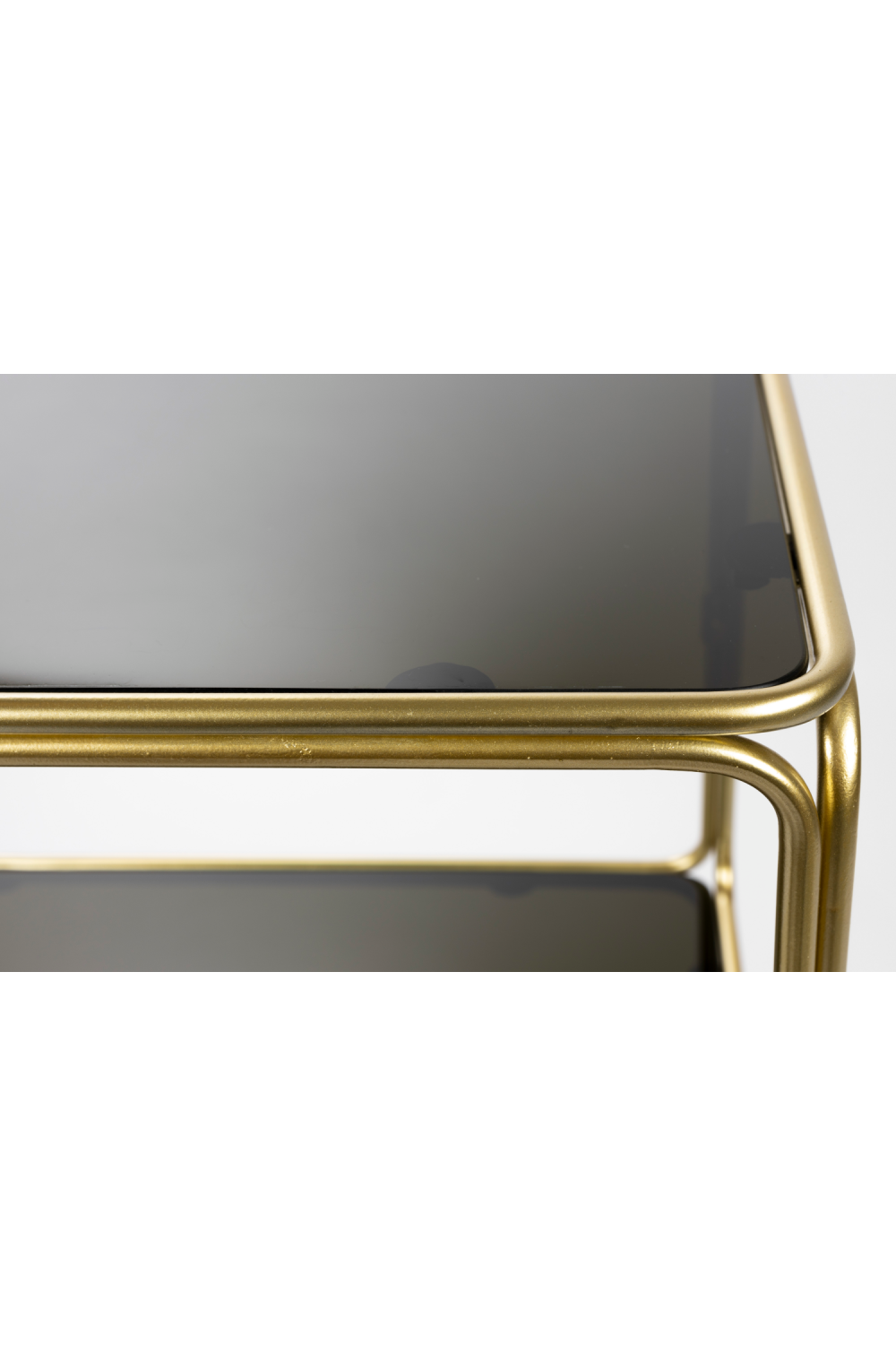 A classic three-layer shelf updated into a modern look with smooth glass shelves and a slender black iron frame. Liah by DF offers generous open space to display your well-loved books, collectibles, or other pieces of your choice.