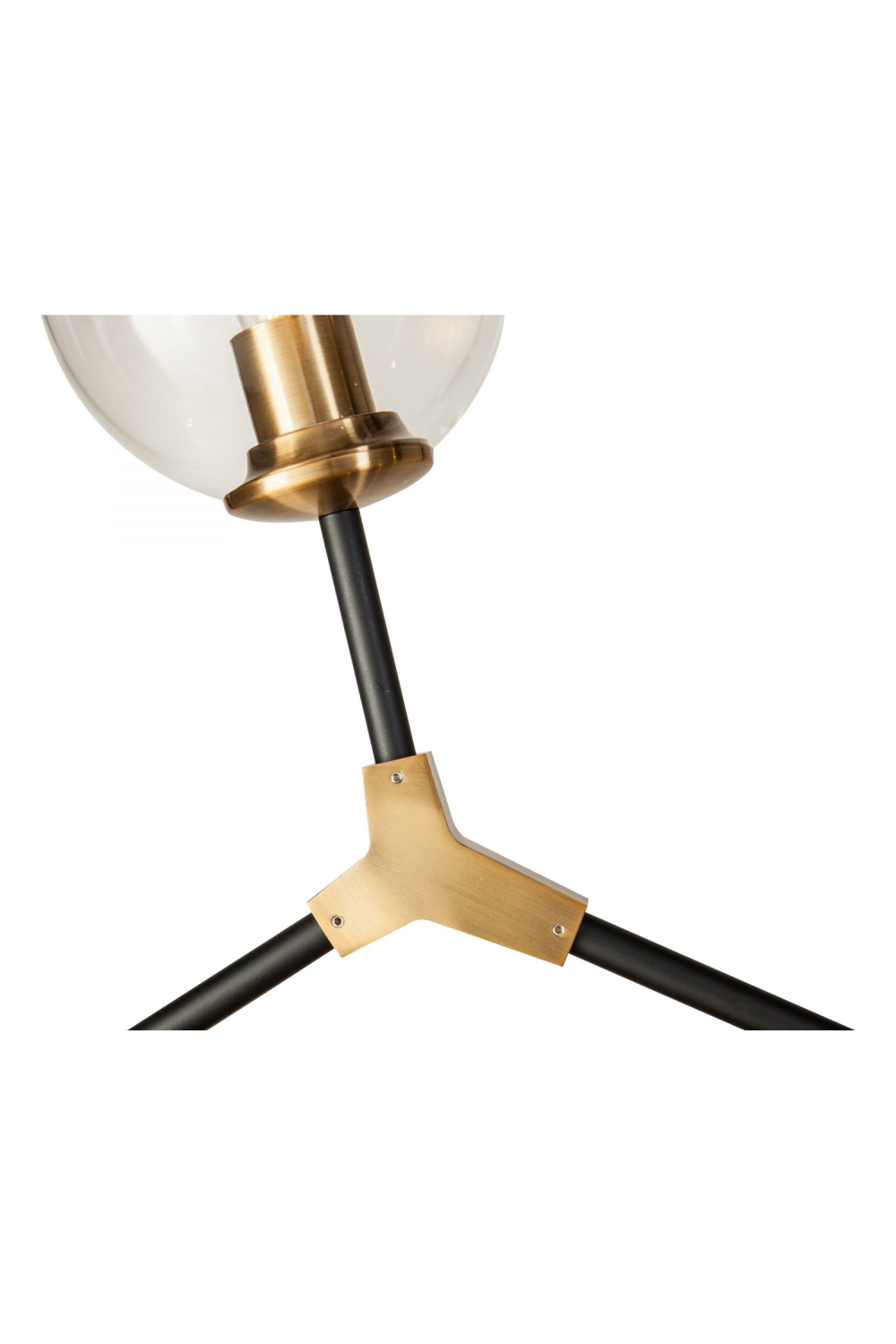 This molecule of lighting design, with bronze and black delicate supports and hand-blown glass shades, is a fabulously modern statement in a living space or above a rectangular coffee table.