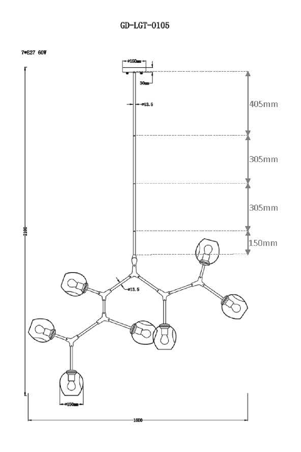 - Bulbs not incl: Recommended 7 x 60W, E27