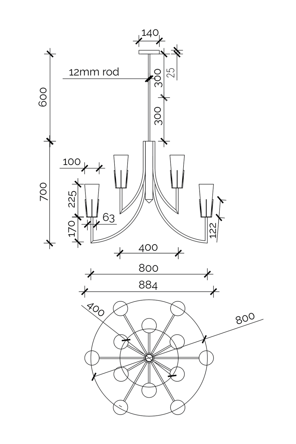 - 12 Bulbs (not incl.) : Max. 40W - E14