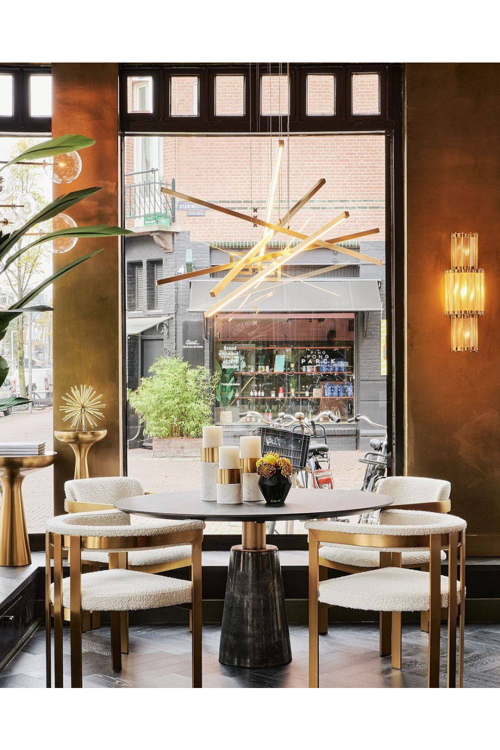 Decorate your dining area in contemporary style with the Clubhouse Modern Barrel Dining Chair designed by Eichholtz. This ultra-chic chair features a stylish frame with a backrest that blends seamlessly into the armrests. The comfortable seat and backrest are upholstered in deluxe fabric and allow your guests to enjoy seating for long periods at a time.