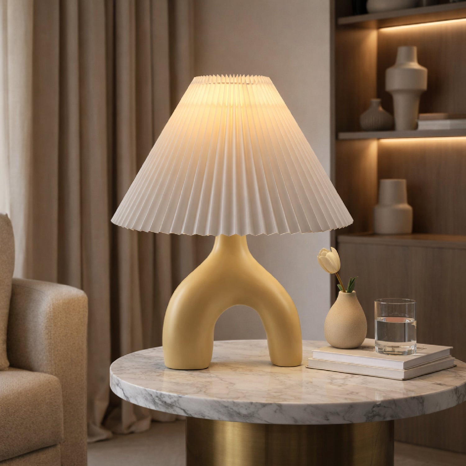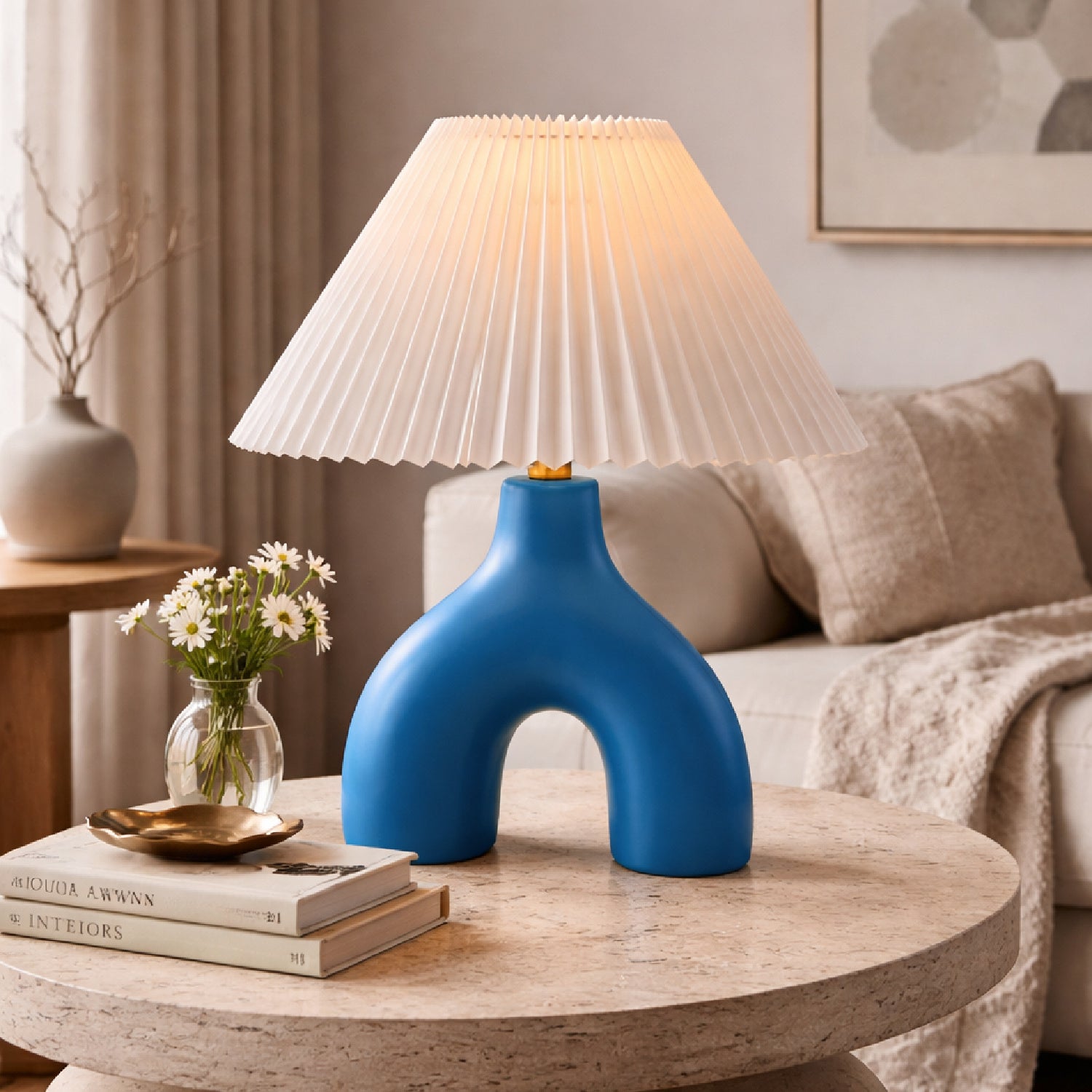 Ceramic White Linen Table Lamp | Kuda Home Alvik