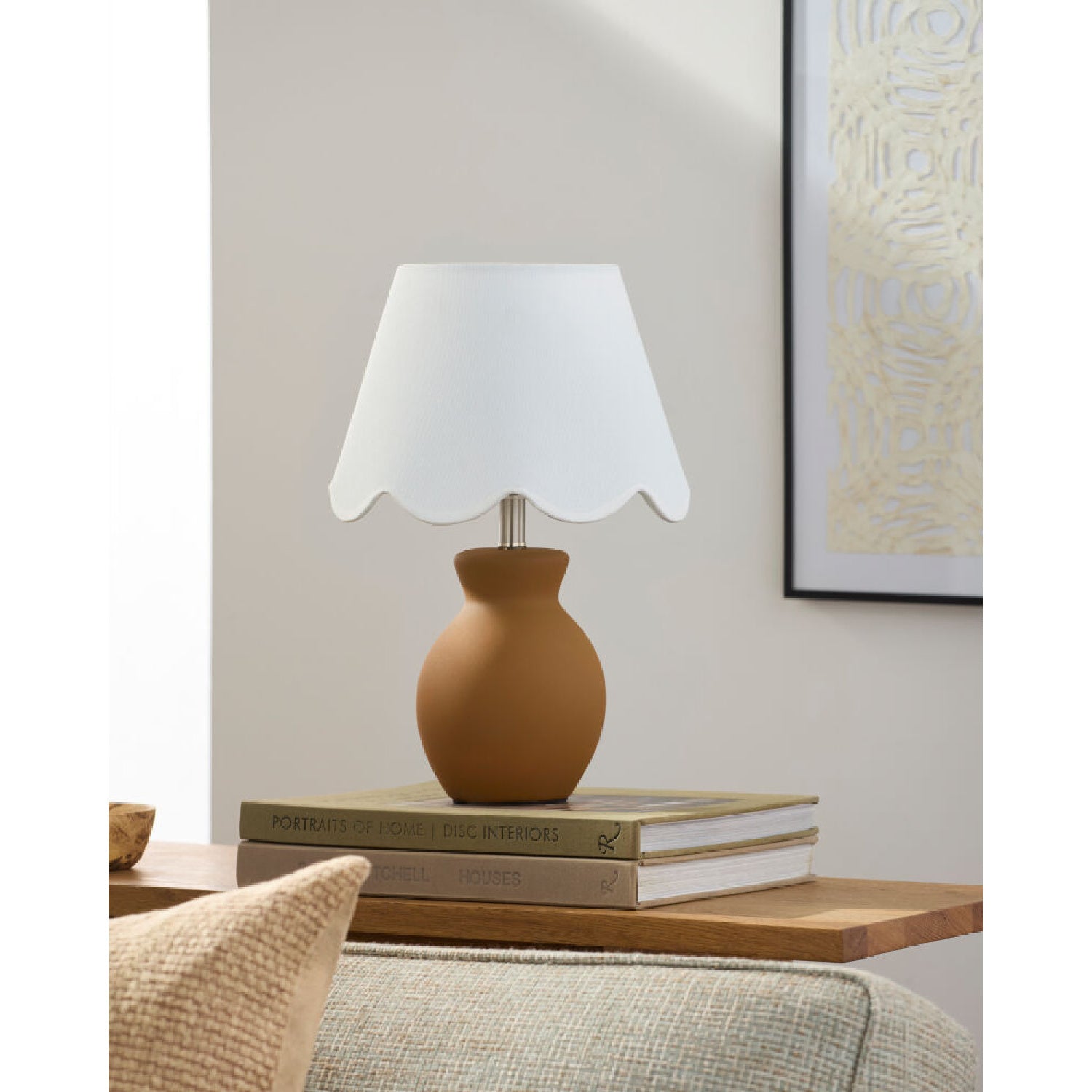 Scalloped Edge Accent Table Lamp | Kuda Home Stella Diminuta - White Cotton / White is backordered and will ship as soon as it is back in stock.