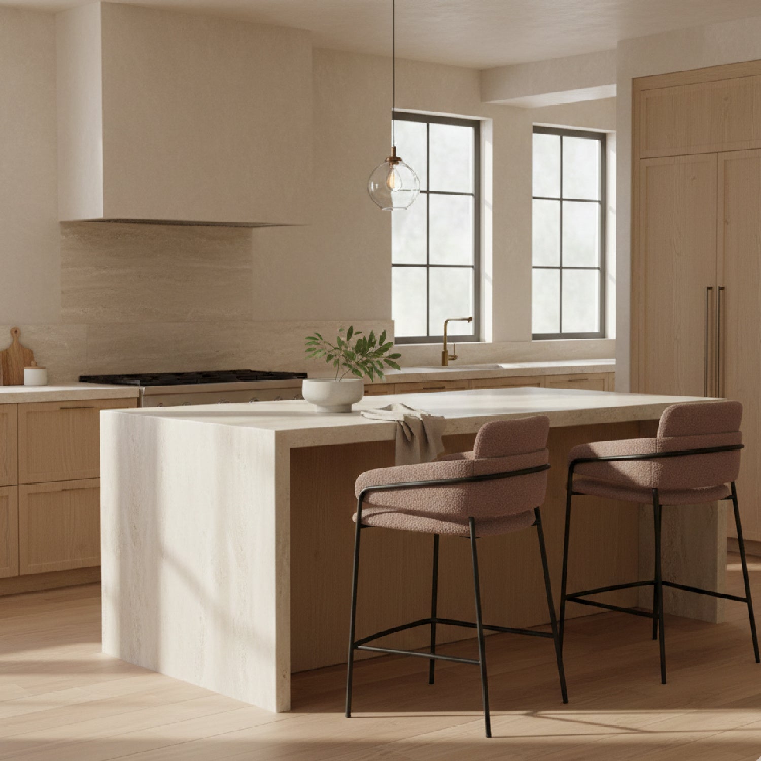 This counter stool has a beautifully wrapped seat and back with a fine frame. This chair combines mid-century modern with glam and decor elements and works well in space, residential, or hospitality.