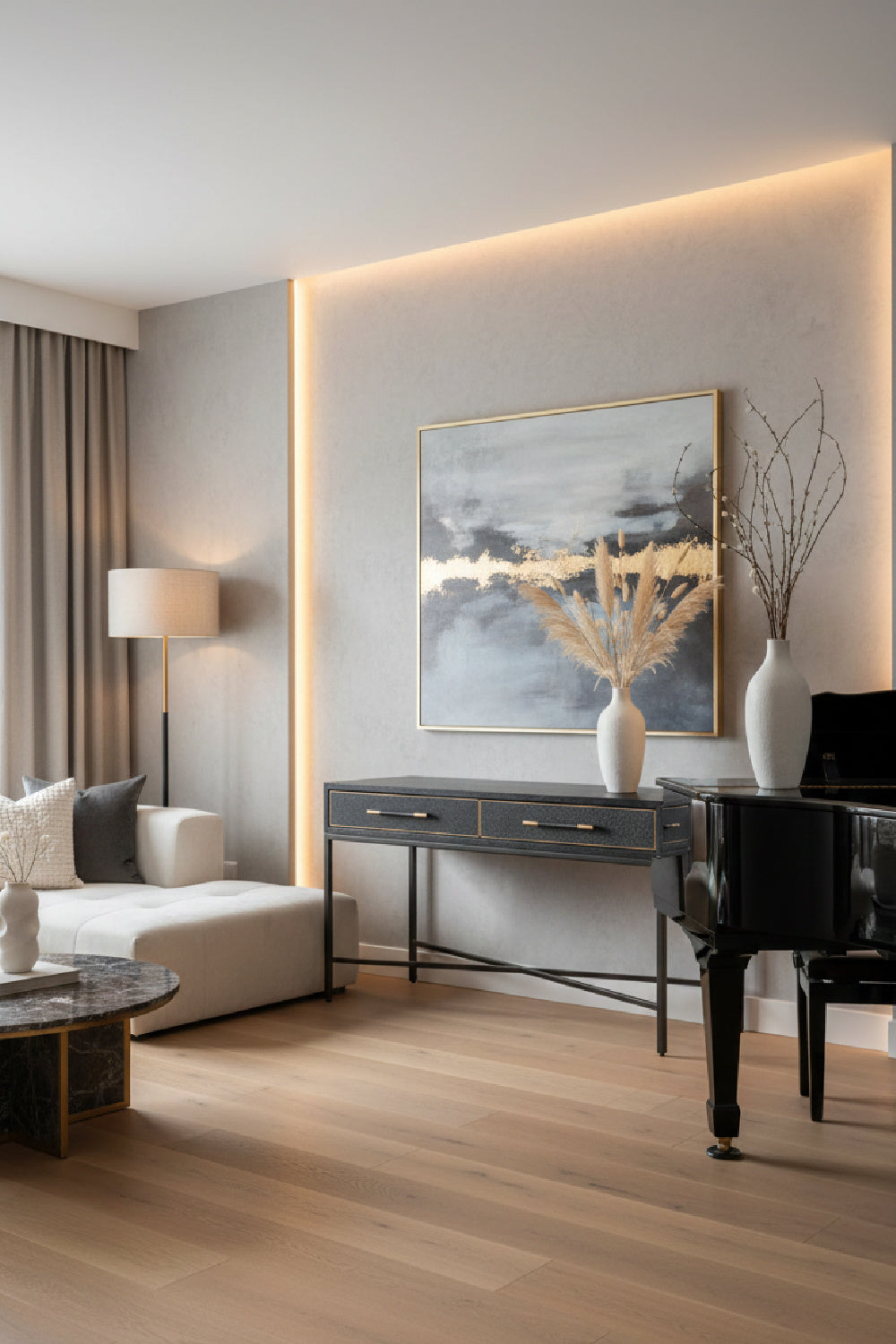 The Mako Console Table is a classy affair of solid oak. Brass legs and handles instill this piece of furniture with a feeling of elegance and warmth.The cabinet is finished off with a matt lacquer for an understated look because our Mako furniture speaks for itself.