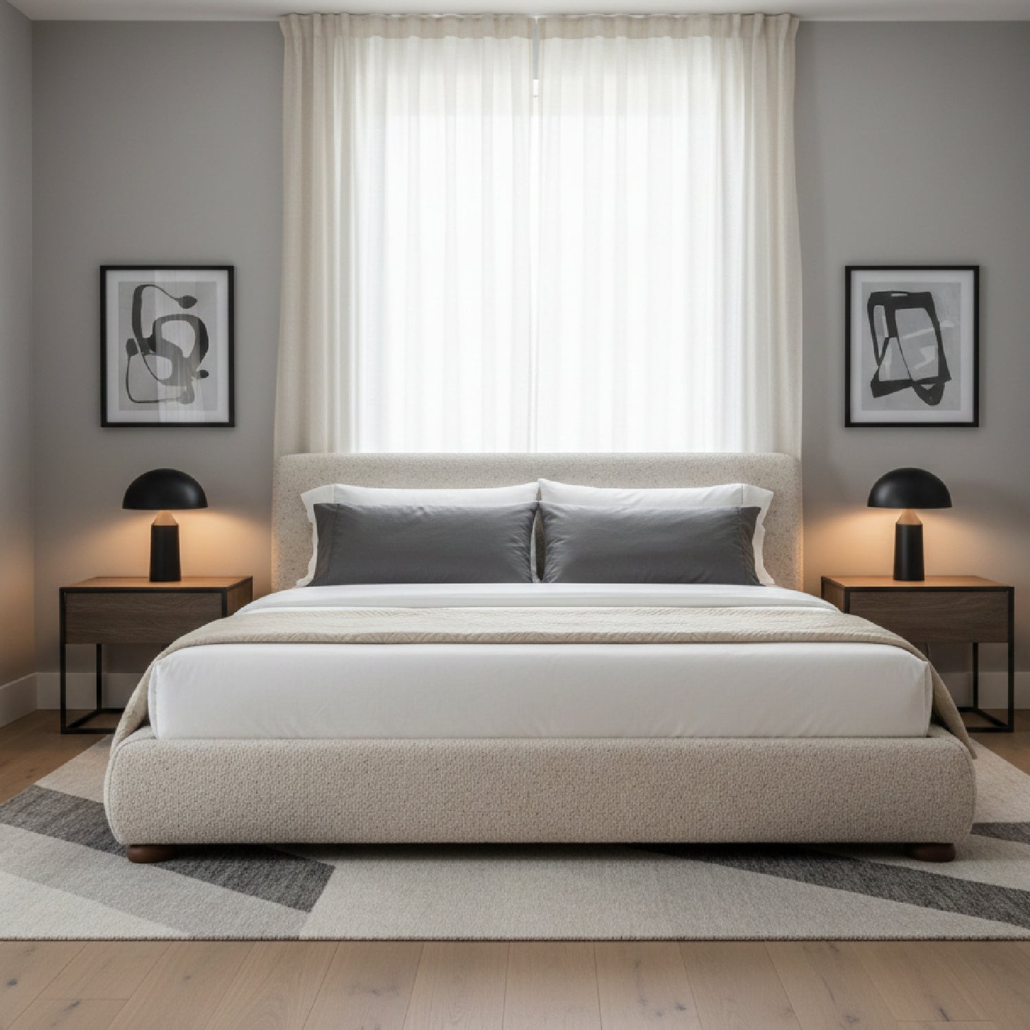 For those who like their comfort with a little character. The Beau Bed pairs a generously rounded headboard with bun-shaped legs, all wrapped in textured speckled light grey upholstery. A hydraulic lift reveals hidden storage, while its sculptural proportions and tactile fabric bring warmth to bedroom spaces. Designed for comfort and crafted for function, Beau makes a storage bed the most stylish piece in the room.