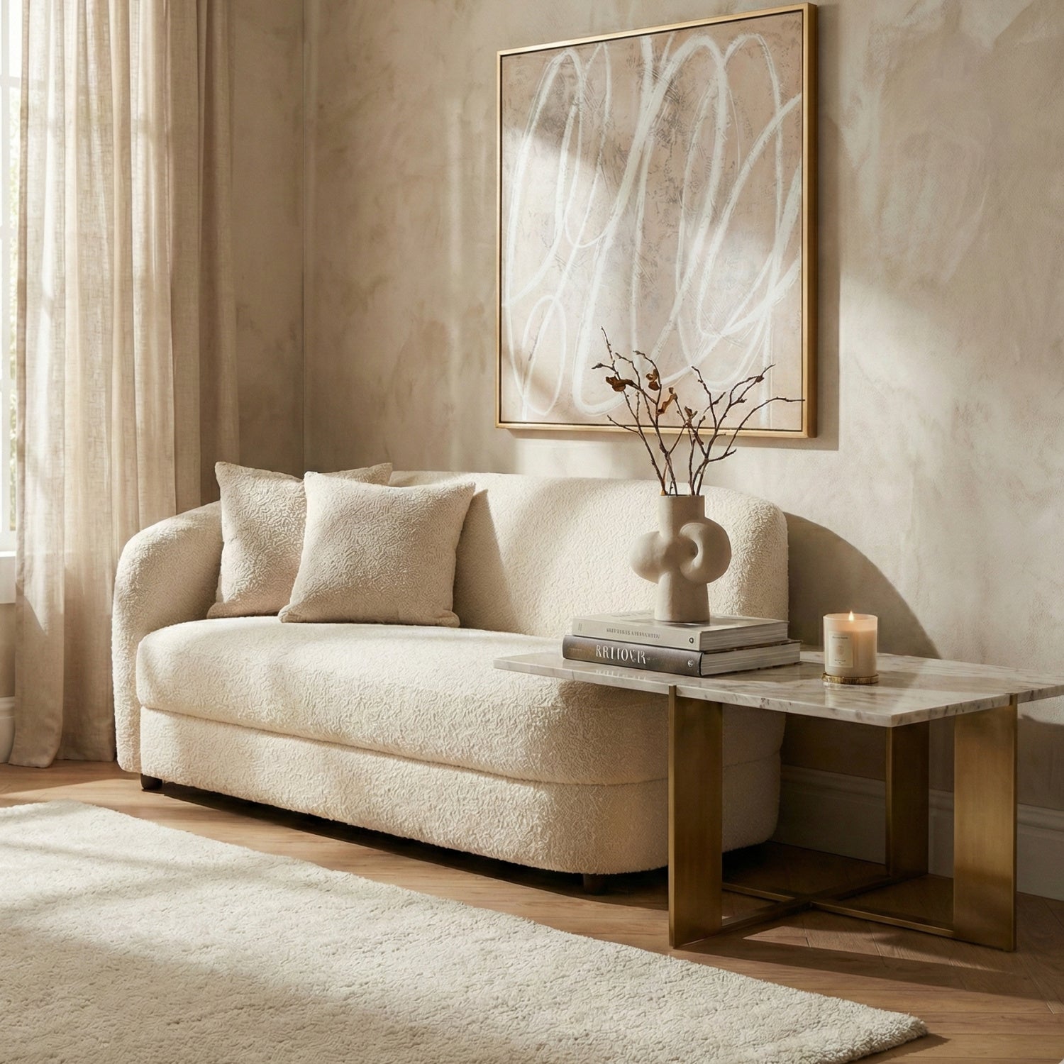 The Ever-framed painting embraces the ruminative elegance of abstract minimalism. A curvilinear scribble paces across the canvas, creating a mesmerizing visual rhythm.