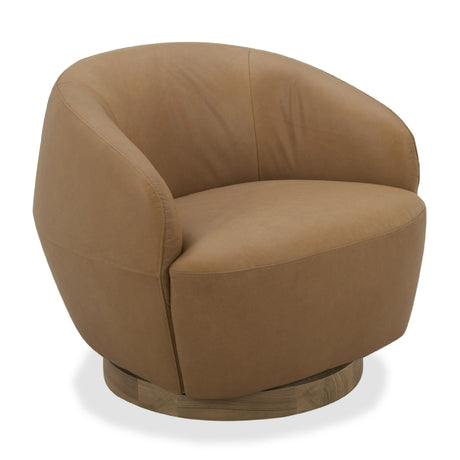 Tan Leather Swivel Accent Chair | OROA Modern Agatha