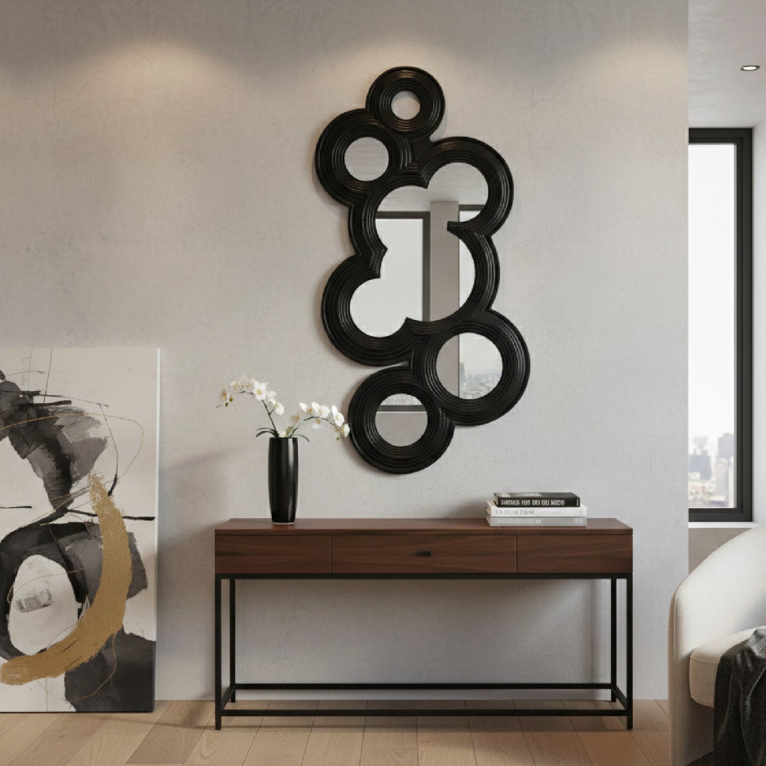 The Riley mirror exemplifies understated elegance with its refined black birch wood frame and pristine glass surface. Each piece is meticulously handcrafted, showcasing the natural character of the wood grain while maintaining a clean, minimalist aesthetic. This sophisticated mirror adds architectural interest to any space, creating visual depth and reflecting light to enhance your interior. A timeless accent that elevates both modern and traditional settings with quiet, enduring style.