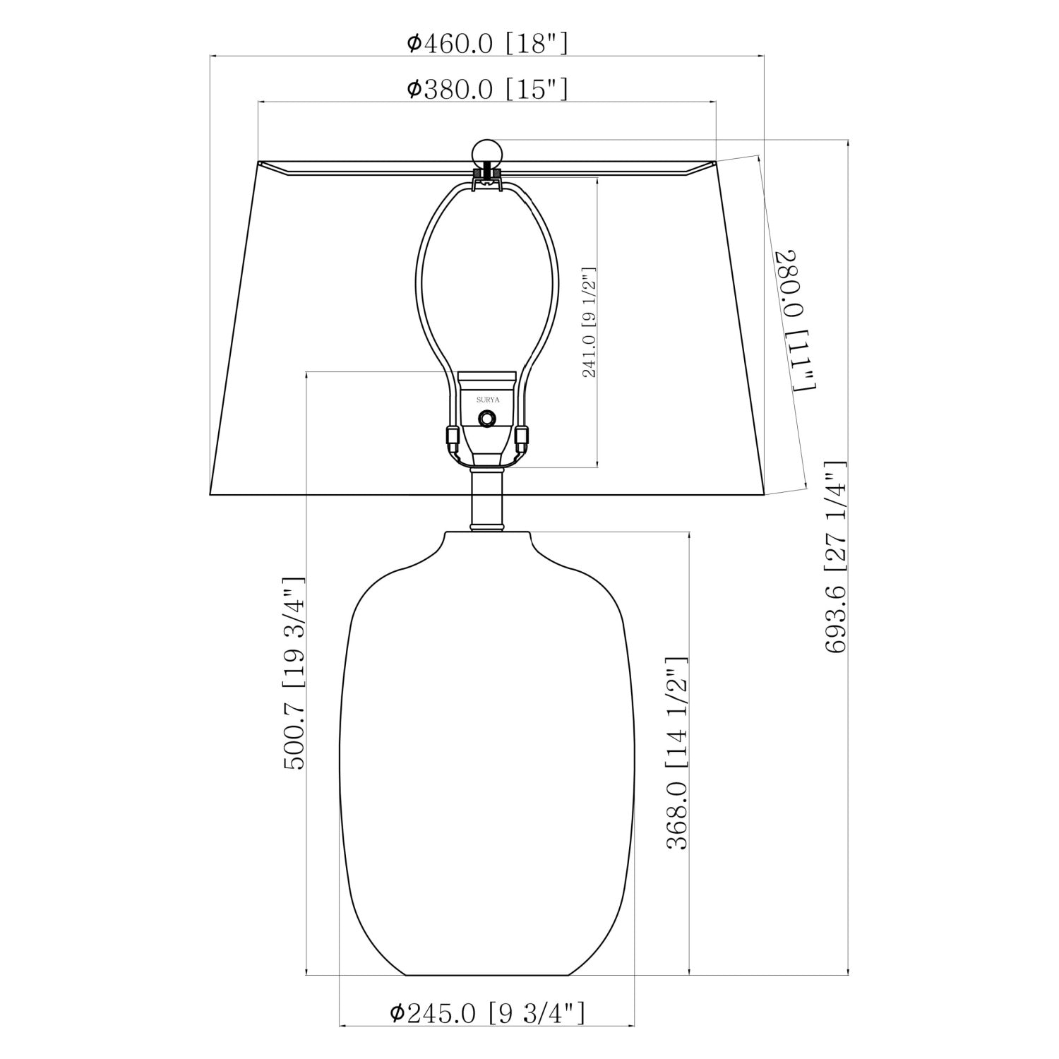 - 1 bulb ( not incl. ) Standard / E-26 Socket / 100 Max Wattage
