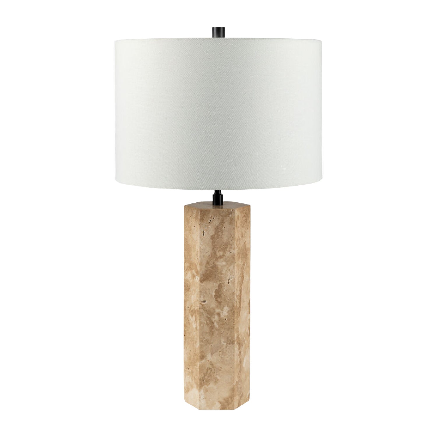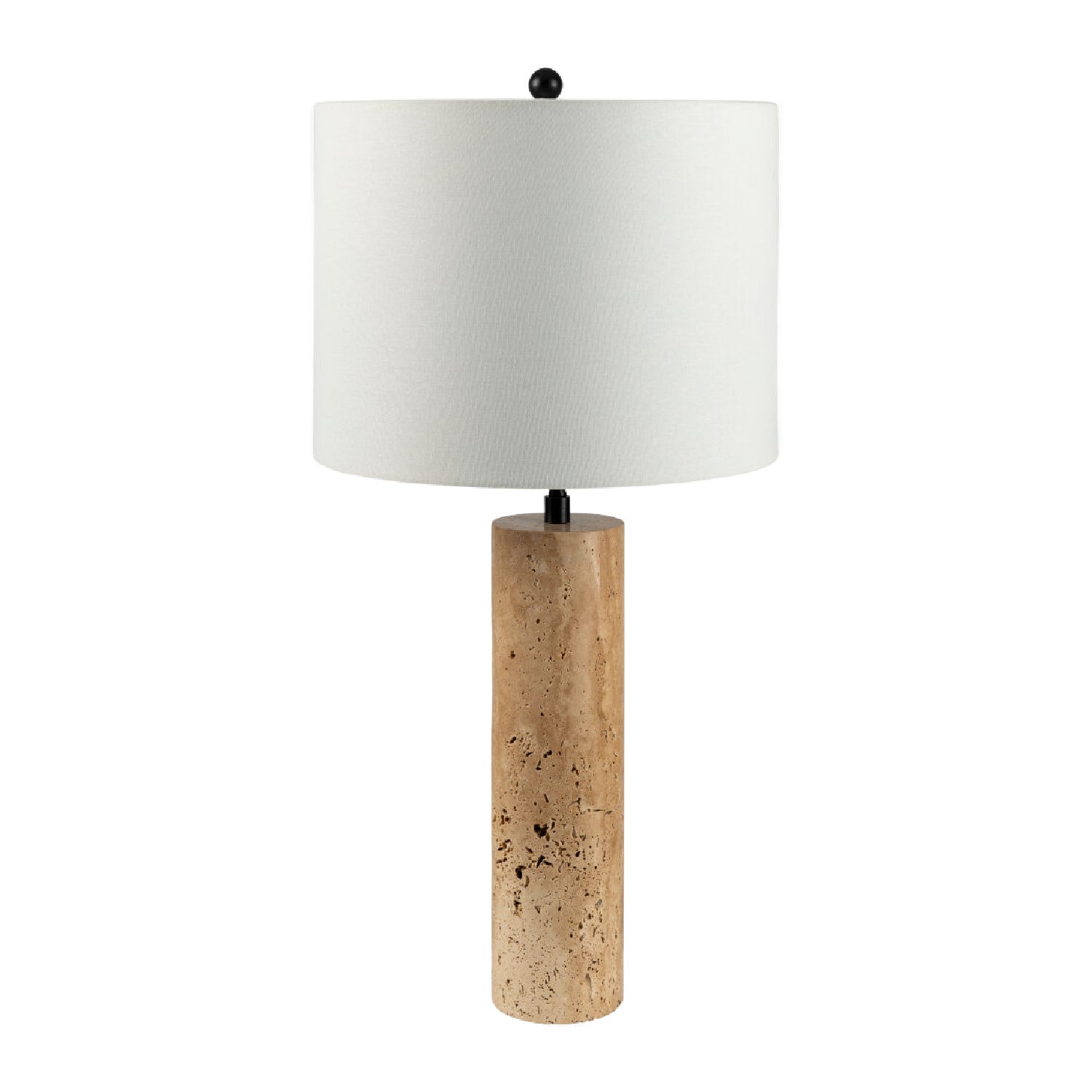 Illuminate your space with a touch of Industrial Rustic charm by adding the Aurembra Accent Table Lamp to your home decor. Constructed with a stunning Travertine body and a durable Metal finial, this lamp exudes a robust and earthy appeal that can enhance any room's aesthetic. The lamp is complemented by an exterior Linen shade and an interior Polyester shade, which work together to diffuse warm, inviting light throughout your space. This accent table lamp makes an impressive statement on its own while seamlessly blending into your existing decor. With its unique combination of materials and textures, the Aurembra Accent Table Lamp is more than just lighting - it's a piece of art that illuminates.