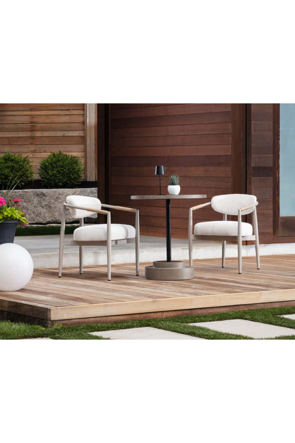 For the sleek lines of the Marita Dining Armchair, it's all about the details. With slim yet sturdy arms wrapped in wicker weave, the modern profile of this stunning piece is carefully crafted for outdoor soirees filled with sun and laughter.