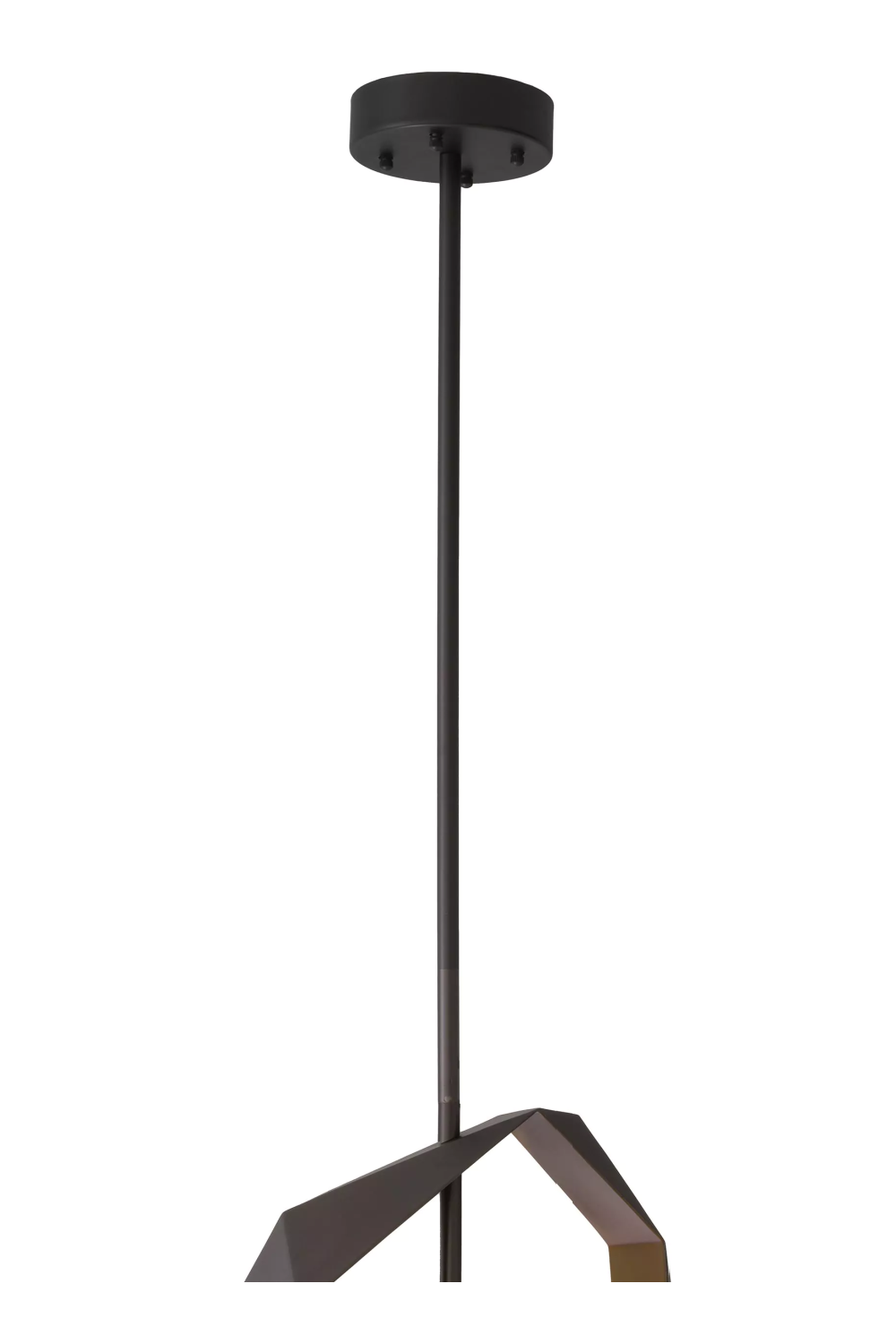 The cut out shapes of Chandelier Santos create a modern silhouette that is suitable for any bedroom, living room, dining area, or even hallway. The outside of the metal is beautified with a gunmetal finish. The inside has an antique brass finish that gets a nice glow when the chandelier is lit. The tubular lampshade is made from translucent alabaster.