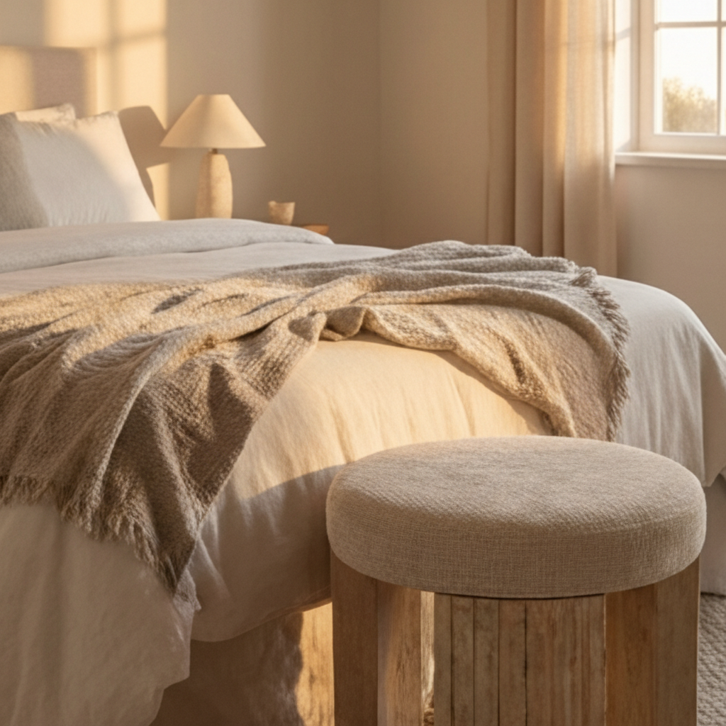 Style tip: Place it beside a sofa as a refined footrest, at the end of a bed for a polished finish, or in a walk-in closet as a chic vanity stool.