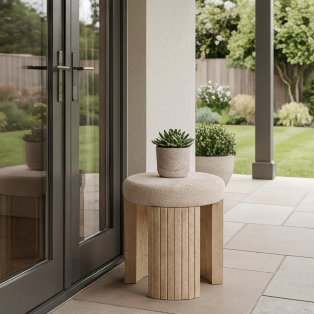 Bring modern-organic luxury to your home with the Gallice Round Travertine Base Stool by Richmond Interiors. Designed as an accent stool, ottoman, or sculptural side perch, it pairs a plush, textured upholstered seat with a striking solid-stone look base. The fluted travertine foundation and arched cutouts create an architectural silhouette that elevates living rooms, bedrooms, dressing areas, and boutique-inspired entryways—while remaining versatile enough to style as extra seating or a decorative pedestal.