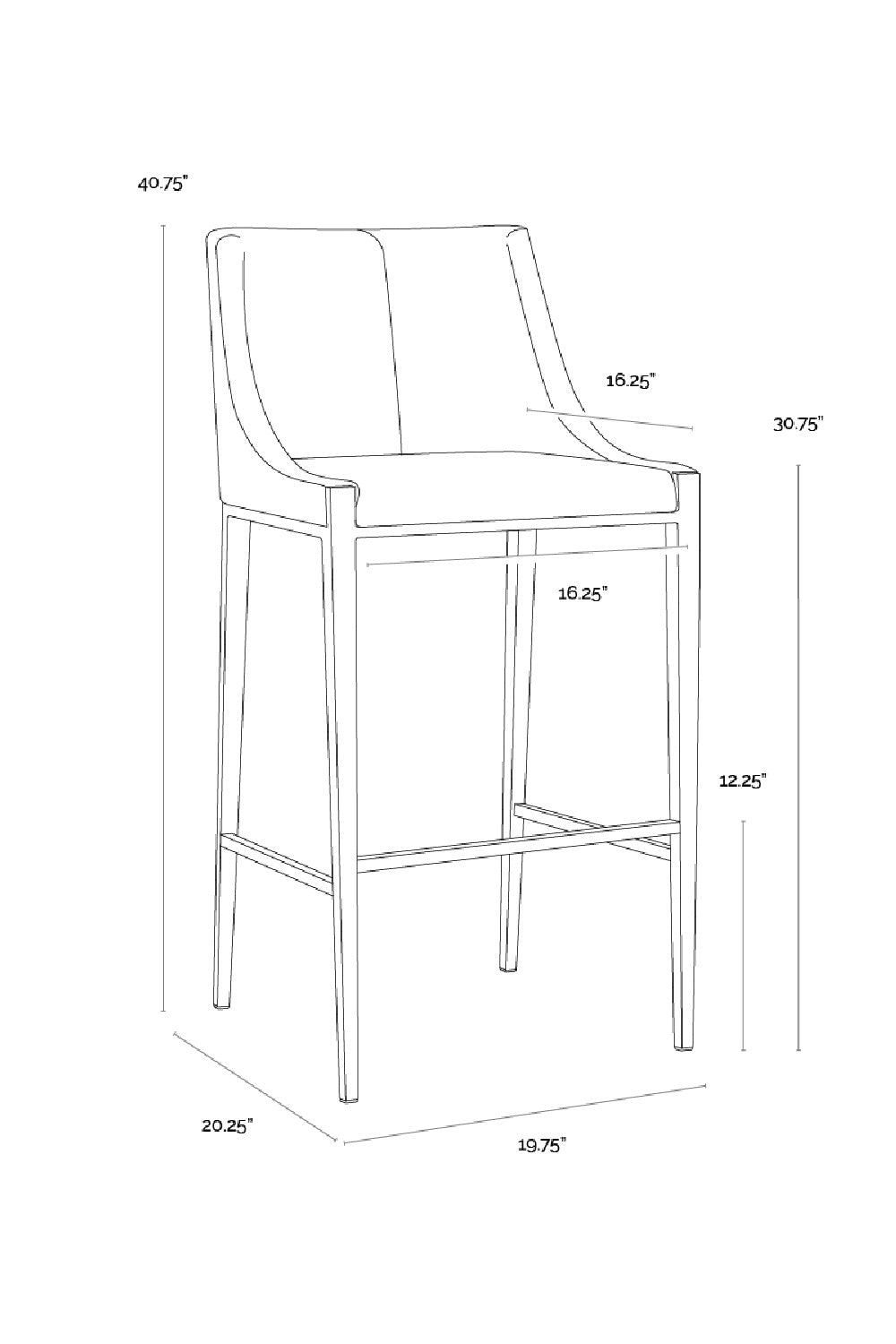 With its clean and modern design, this barstool is a stunning addition to any dining space. Stocked in our textured monument pebble fabric and completed with powder-coated stainless steel legs in an antique brass finish.