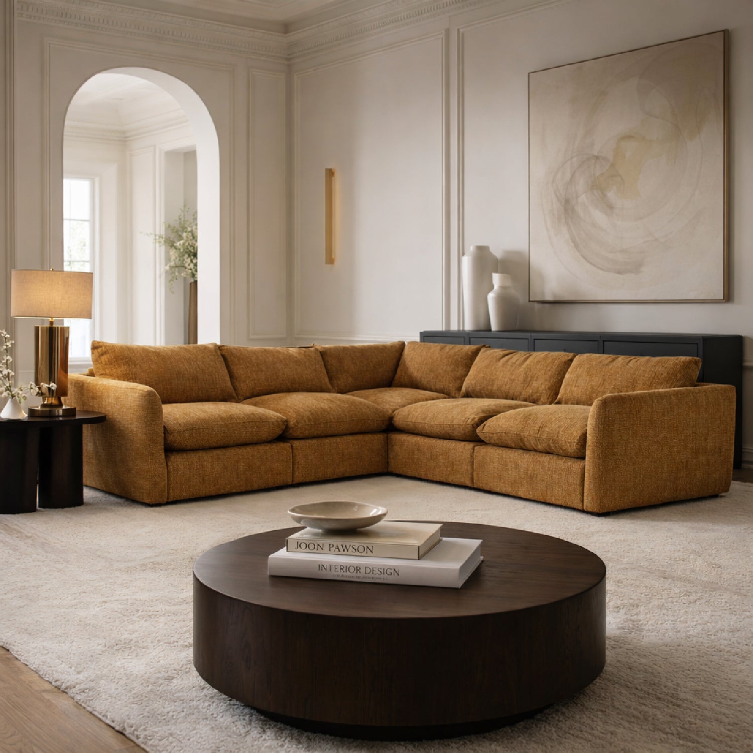 The OROA Modern Kinsey modular sofa offers exceptional flexibility for any living space. This five-piece configuration allows you to arrange sections to suit your room's layout and lifestyle needs. Crafted with quality fabric upholstery, each piece combines comfort with contemporary design. The modular system lets you customize your seating arrangement, making it ideal for evolving homes. Whether you prefer a sprawling sectional or separate seating clusters, the Kinsey adapts to your vision. A sophisticated choice for those seeking both style and functional versatility.